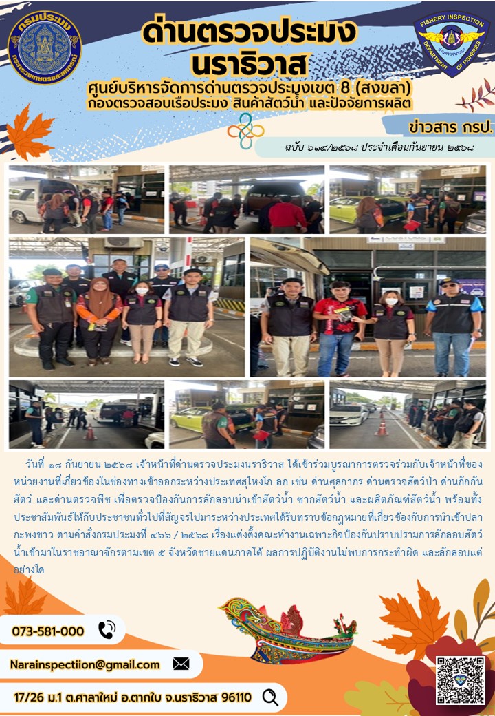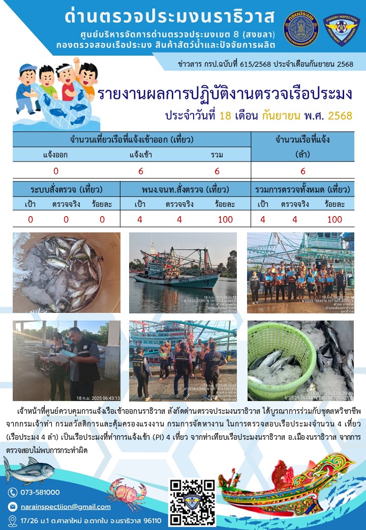 ประชาสัมพันธ์ด่านตรวจประมงนราธิวาส ประจำวันที่ 18 กันยายน 2568