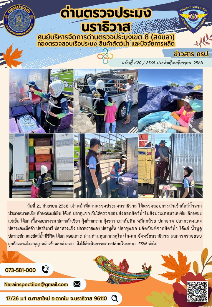 NEW ประชาสัมพันธ์ด่านตรวจประมงนราธิวาส ประจำวันที่ 21 กันยายน 2568..คลิก