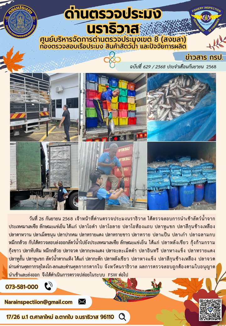 NEW ประชาสัมพันธ์ด่านตรวจประมงนราธิวาส ประจำวันที่ 26 กันยายน 2568..คลิก
