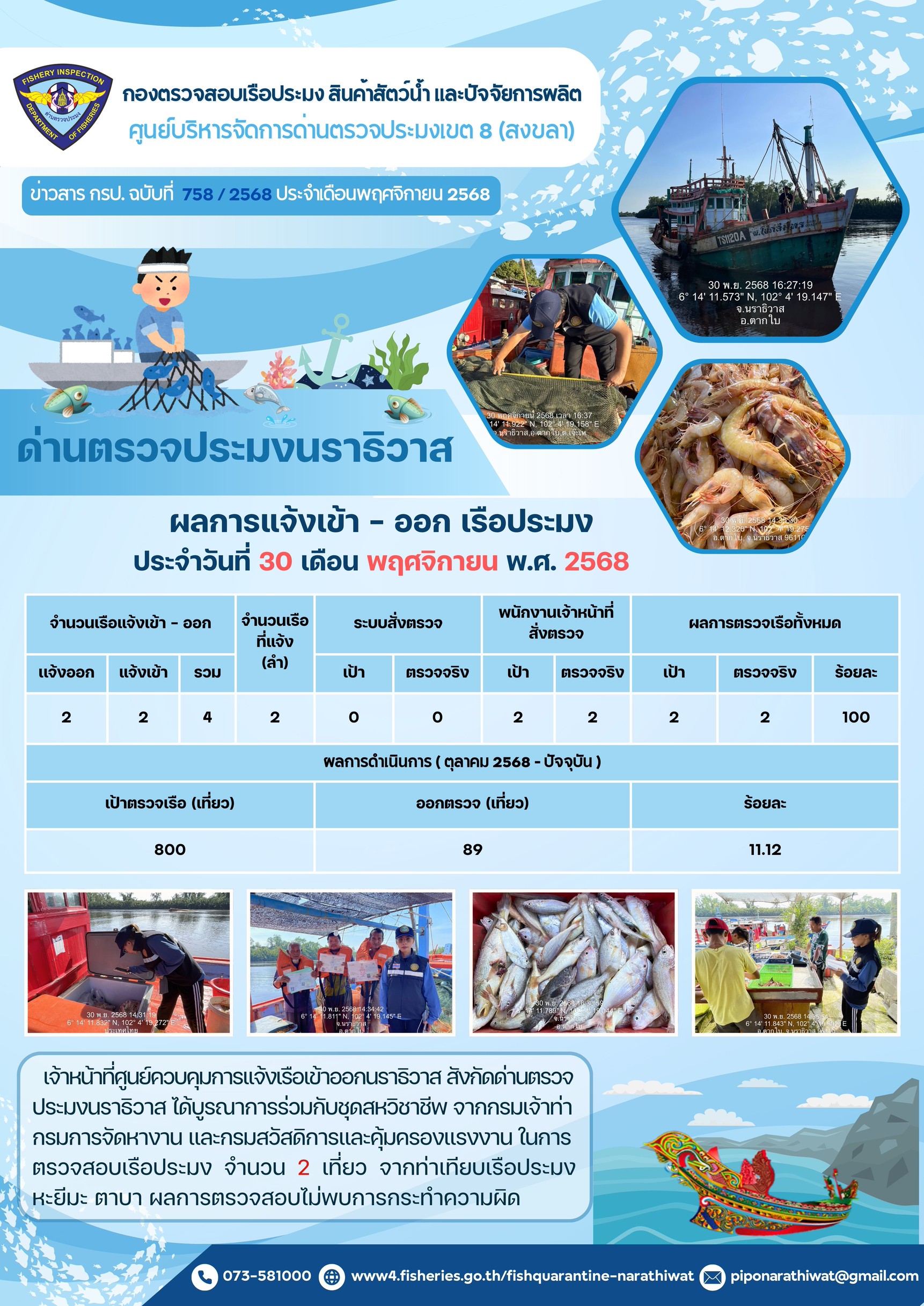 ประชาสัมพันธ์ด่านตรวจประมงนราธิวาส ประจำวันที่ 30 พฤศจิกายน 2568