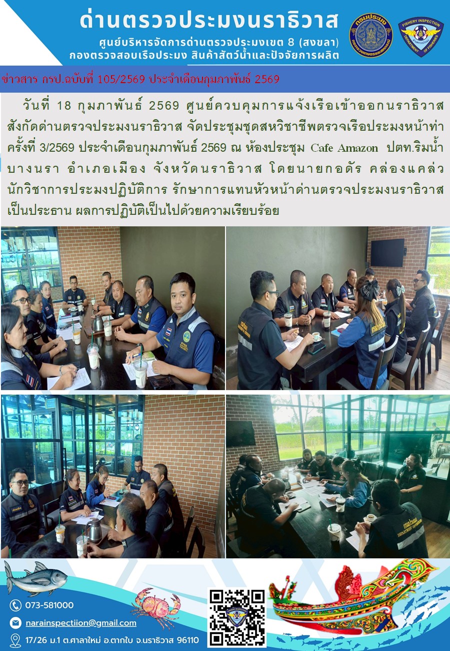 ประชาสัมพันธ์ด่านตรวจประมงนราธิวาส ประจำวันที่ 18 กุมภาพันธ์ 2569