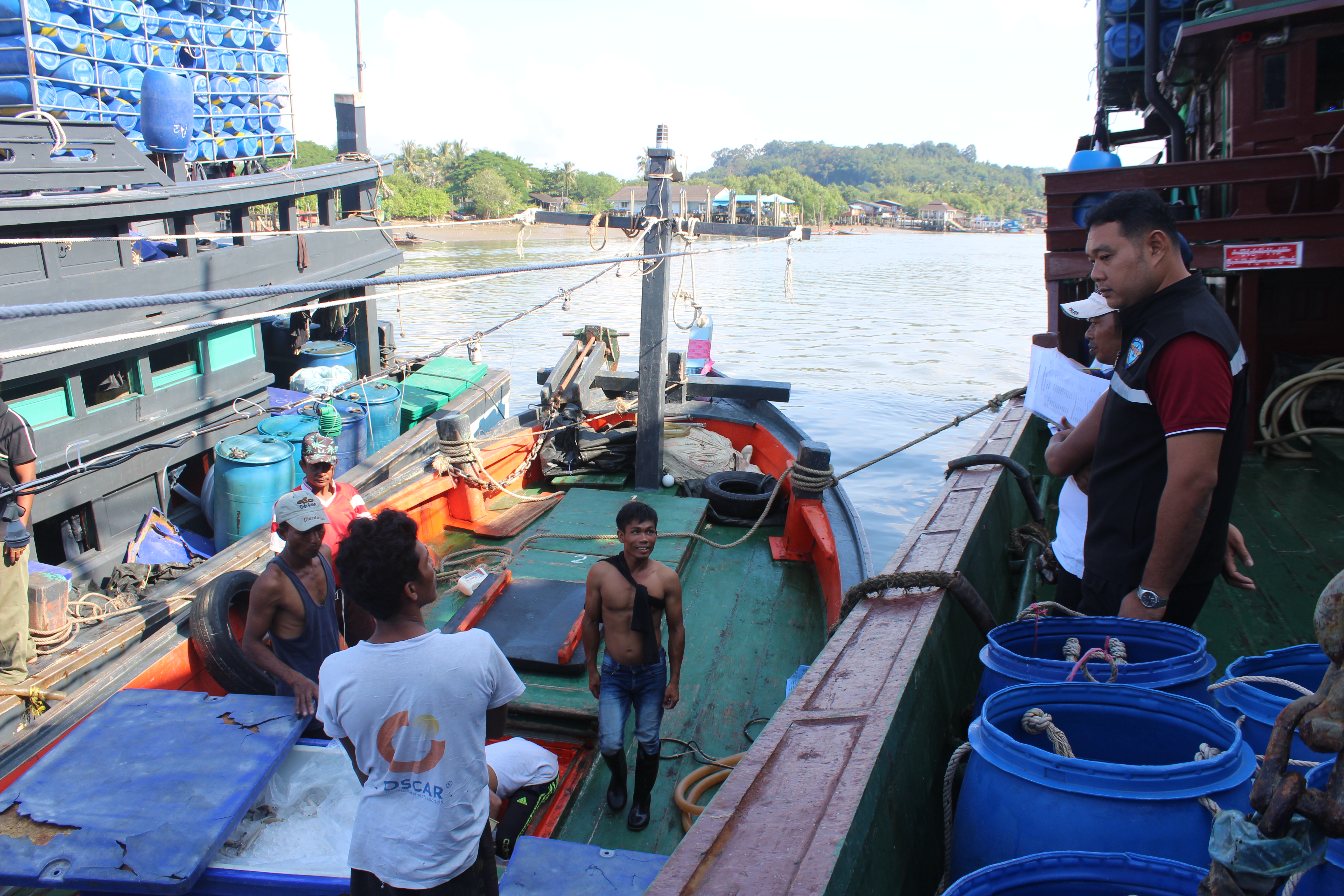 วันที่ 3 ตุลาคม 2562 เวลา 09.45 น. เจ้าหน้าที่ด่านตรวจสัตว์น้ำจังหวัดระนอง สังกัดศูนย์บริหารจัดการ   ด่านตรวจสัตว์น้ำ เขต 3 (สงขลา) กองควบคุมการค้าสัตว์น้ำและปัจจัยการผลิต กรมประมง ได้ตรวจสอบเรือขนถ่ายสัตว์น้ำ  ที่ขออนุญาตเข้าเทียบท่าจากประเทศเมียนมา ณ ท่าเทียบเรือธนสาร (Choke point) โดยทำการตรวจสอบเรือขนถ่าย เอกสารรับรองการจับสัตว์น้ำ (CC) ทำการประเมินชนิดและปริมาณสัตว์น้ำเบื้องต้น พบว่ามีความสอดคล้องตามที่สำแดง เจ้าหน้าที่จึงได้บันทึกรายงานผลการตรวจเรือ (PIR) ในระบบ e-PSM ก่อนออกใบอนุญาตให้นำเข้าสัตว์น้ำหรือผลิตภัณฑ์ สัตว์น้ำ (DOF2) เพื่อทำการขนถ่าย ณ ท่าเทียบเรือที่จดทะเบียนกับกรมประมงสัตว์น้ำที่นำเข้า ได้แก่ ปลาทูปากจิ้งจก