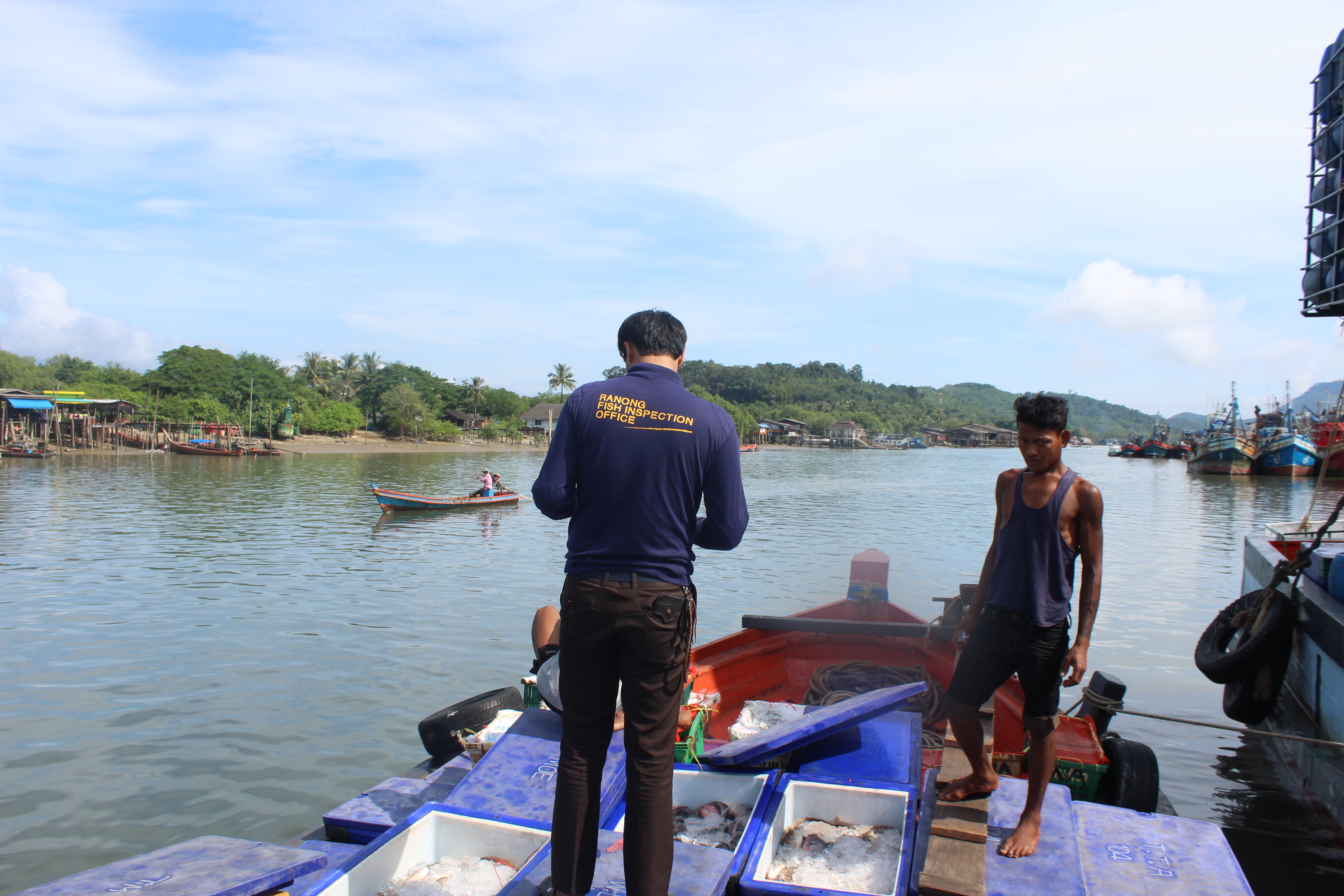 วันที่ 6 ตุลาคม 2562 เวลา 09.30 น. เจ้าหน้าที่ด่านตรวจสัตว์น้ำจังหวัดระนอง สังกัดศูนย์บริหารจัดการ ด่านตรวจสัตว์น้ำ เขต 3 (สงขลา) กองควบคุมการค้าสัตว์น้ำและปัจจัยการผลิต กรมประมง ได้ตรวจสอบเรือขนถ่ายสัตว์น้ำ ที่ขออนุญาตเข้าเทียบท่าจากประเทศเมียนมา ณ ท่าเทียบเรือธนสาร (Choke point) โดยทำการตรวจสอบเรือขนถ่าย เอกสารรับรองการจับสัตว์น้ำ (CC) ทำการประเมินชนิดและปริมาณสัตว์น้ำเบื้องต้น พบว่ามีความสอดคล้องตามที่สำแดง เจ้าหน้าที่จึงได้บันทึกรายงานผลการตรวจเรือ (PIR) ในระบบ e-PSM ก่อนออกใบอนุญาตให้นำเข้าสัตว์น้ำหรือผลิตภัณฑ์ สัตว์น้ำ (DOF2) เพื่อทำการขนถ่าย ณ ท่าเทียบเรือที่จดทะเบียนกับกรมประมงสัตว์น้ำที่นำเข้า ได้แก่ ปูม้า กั้งตั๊กแตนมีชีวิต เป็นต้น