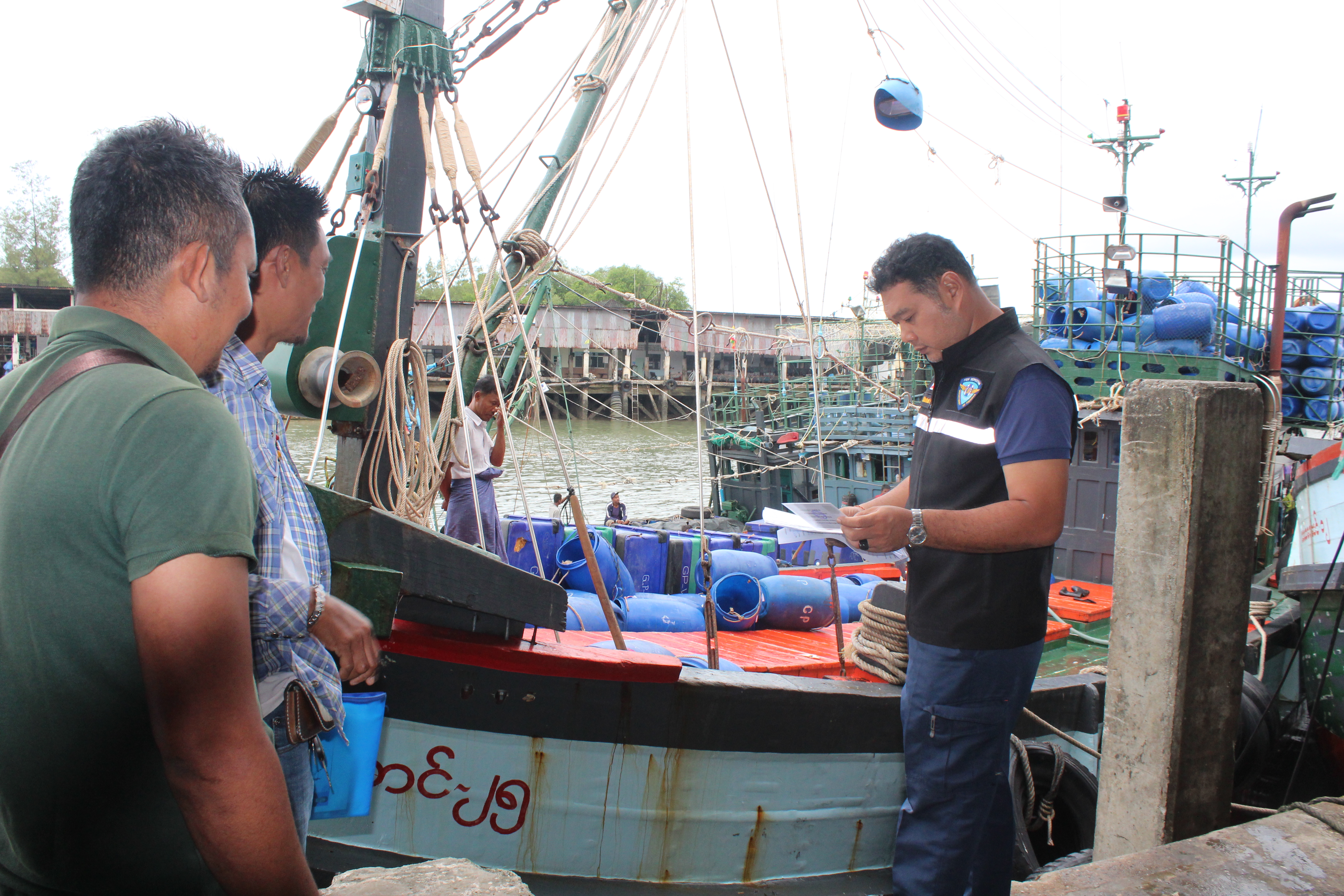 วันที่ 17 ตุลาคม 2562 เวลา 08.30 น. เจ้าหน้าที่ด่านตรวจสัตว์น้ำจังหวัดระนอง สังกัดศูนย์บริหารจัดการ ด่านตรวจสัตว์น้ำ เขต 3 (สงขลา) กองควบคุมการค้าสัตว์น้ำและปัจจัยการผลิต กรมประมง ได้ตรวจสอบเรือขนถ่ายสัตว์น้ำ ที่ขออนุญาตเข้าเทียบท่าจากประเทศเมียนมา ณ ท่าเทียบเรือธนสาร (Choke point) โดยทำการตรวจสอบเรือขนถ่าย เอกสารรับรองการจับสัตว์น้ำ (CC) ทำการประเมินชนิดและปริมาณสัตว์น้ำเบื้องต้น พบว่ามีความสอดคล้องตามที่สำแดง เจ้าหน้าที่จึงได้บันทึกรายงานผลการตรวจเรือ (PIR) ในระบบ e-PSM ก่อนออกใบอนุญาตให้นำเข้าสัตว์น้ำหรือผลิตภัณฑ์ สัตว์น้ำ (DOF2) เพื่อทำการขนถ่าย ณ ท่าเทียบเรือที่จดทะเบียนกับกรมประมงสัตว์น้ำที่นำเข้า คือ ปลาเบญจพรรณ