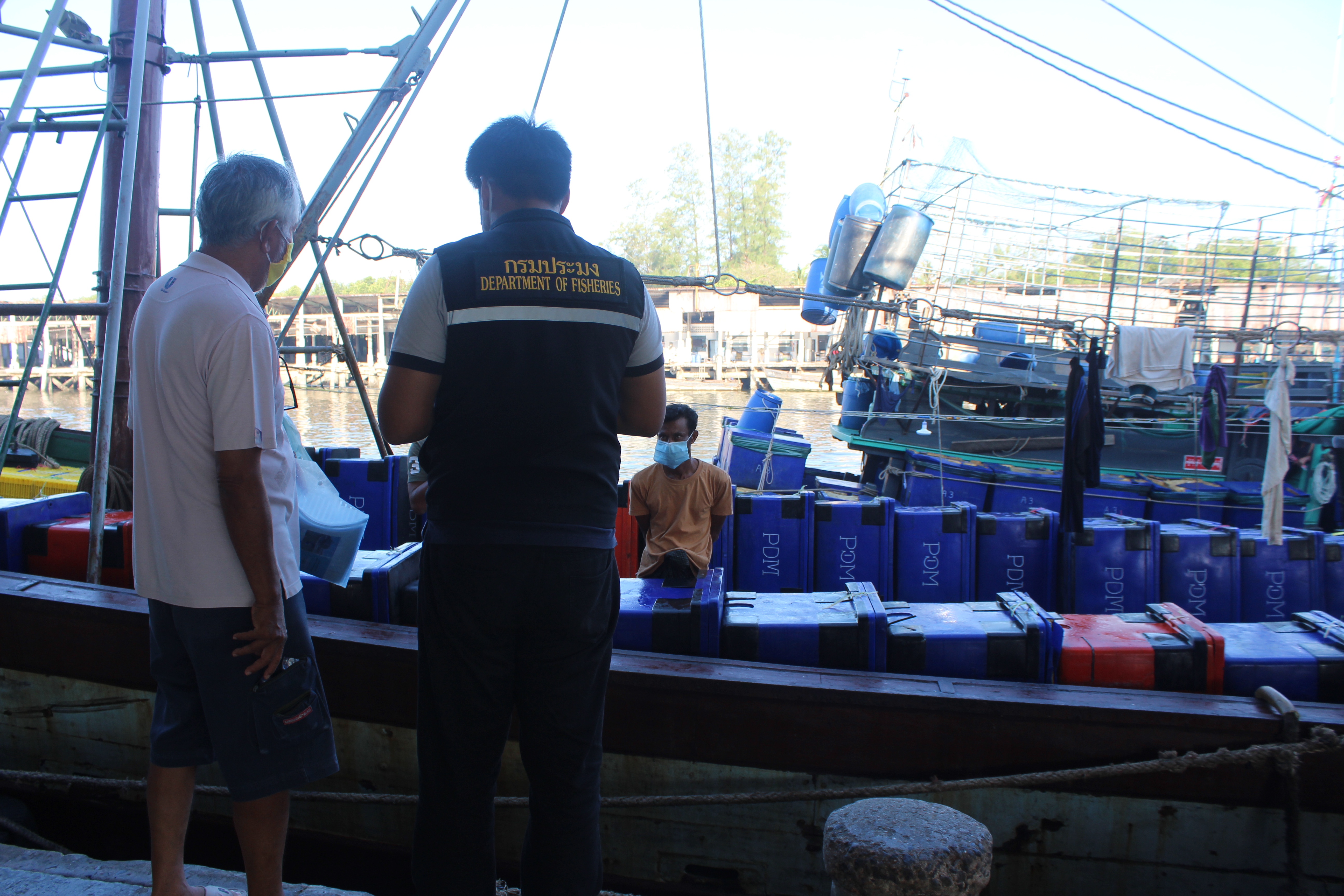 วันที่ 21 เมษายน 2563 2563 เวลา 08.10 น. เจ้าหน้าที่ด่านตรวจสัตว์น้ำจังหวัดระนอง สังกัดศูนย์บริหารจัดการด่านตรวจสัตว์น้ำ เขต 3 (สงขลา) กองควบคุมการค้าสัตว์น้ำและปัจจัยการผลิต กรมประมง ได้ตรวจสอบเรือขนถ่ายสัตว์น้ำ ที่ขออนุญาตเข้าเทียบท่าจากประเทศเมียนมา ณ ท่าเทียบเรือธนสาร (Choke point) โดยทำการตรวจสอบเรือขนถ่าย เอกสารรับรองการจับสัตว์น้ำ (CC) ทำการประเมินชนิดและปริมาณสัตว์น้ำเบื้องต้น พบว่ามีความสอดคล้องตามที่สำแดง เจ้าหน้าที่จึงได้บันทึกรายงานผลการตรวจเรือ (PIR) ในระบบ e-PSM ก่อนออกใบอนุญาตให้นำเข้าสัตว์น้ำหรือผลิตภัณฑ์สัตว์น้ำ (DOF2) เพื่อทำการขนถ่าย ณ ท่าเทียบเรือที่จดทะเบียนกับกรมประมงสัตว์น้ำที่นำเข้า ได้แก่หมึกกล้วย ปูม้า เป็นต้น