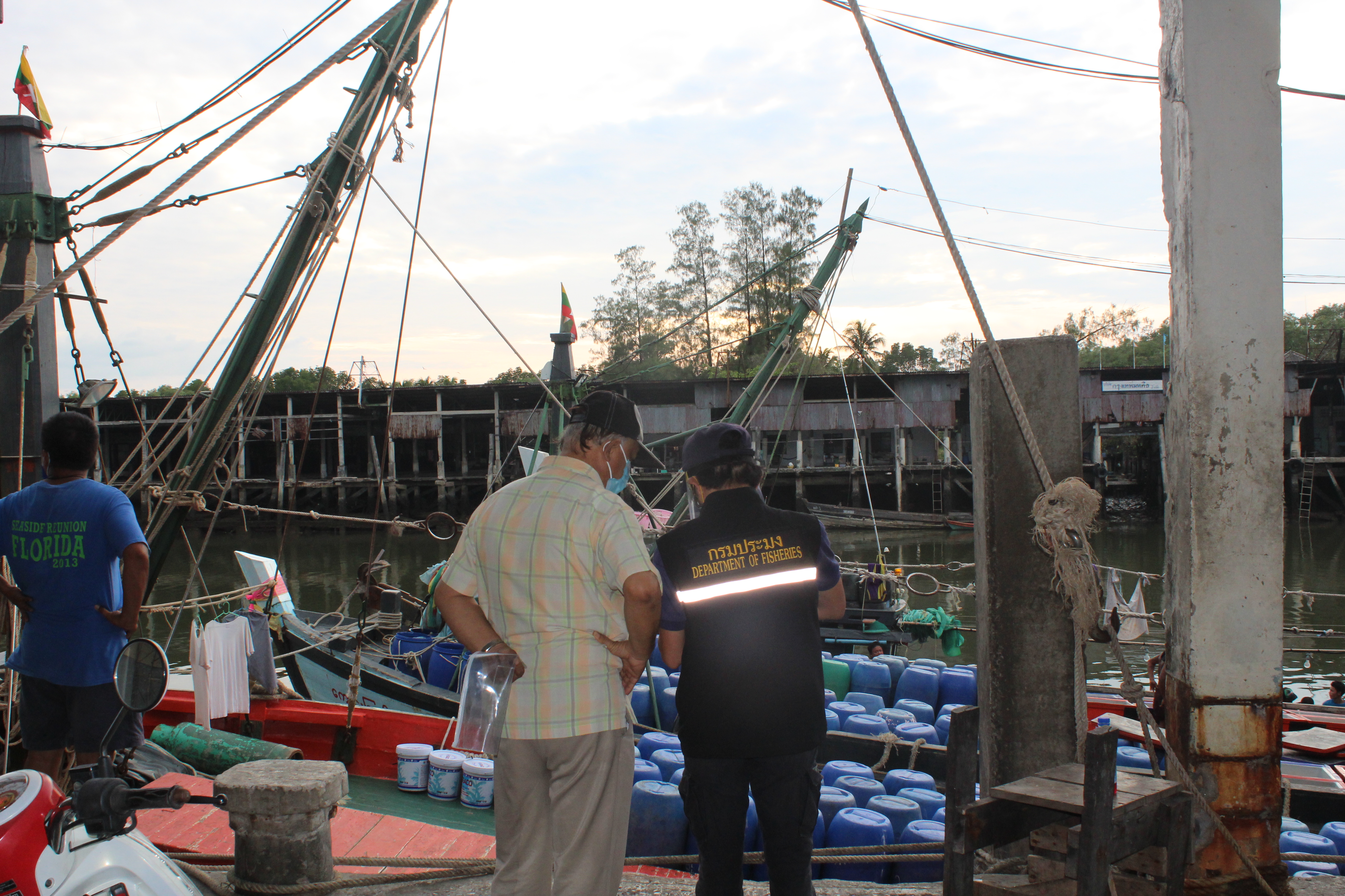 วันที่ 23 เมษายน 2563 เวลา 17.35 น. เจ้าหน้าที่ด่านตรวจสัตว์น้ำจังหวัดระนอง สังกัดศูนย์บริหารจัดการด่านตรวจสัตว์น้ำ เขต 3 (สงขลา) กองควบคุมการค้าสัตว์น้ำและปัจจัยการผลิต กรมประมง ได้ตรวจสอบเรือขนถ่ายสัตว์น้ำ ที่ขออนุญาตเข้าเทียบท่าจากประเทศเมียนมา ณ ท่าเทียบเรือธนสาร (Choke point) โดยทำการตรวจสอบเรือขนถ่าย เอกสารรับรองการจับสัตว์น้ำ (CC) ทำการประเมินชนิดและปริมาณสัตว์น้ำเบื้องต้น พบว่ามีความสอดคล้องตามที่สำแดง เจ้าหน้าที่จึงได้บันทึกรายงานผลการตรวจเรือ (PIR) ในระบบ e-PSM ก่อนออกใบอนุญาตให้นำเข้าสัตว์น้ำหรือผลิตภัณฑ์สัตว์น้ำ (DOF2) เพื่อทำการขนถ่าย ณ ท่าเทียบเรือที่จดทะเบียนกับกรมประมงสัตว์น้ำที่นำเข้า ได้แก่ ปลาจวด ปลาลิ้นหมา เป็นต้น