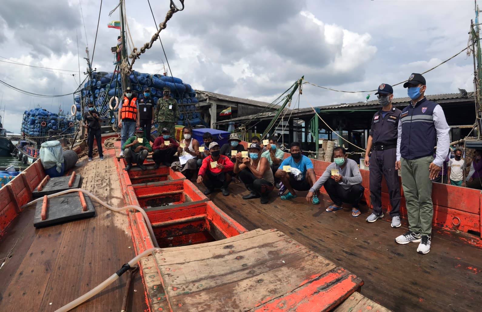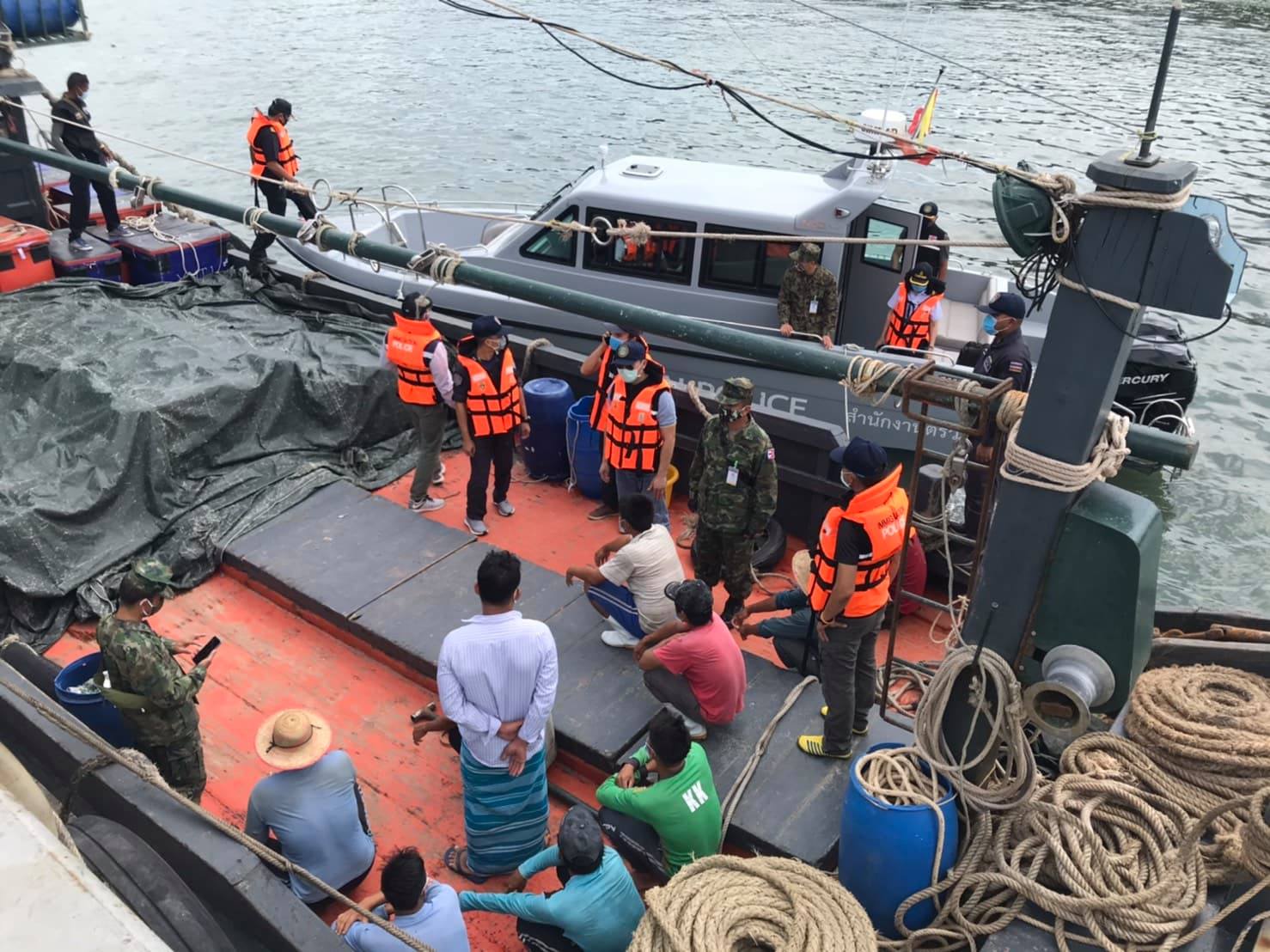 เจ้าหน้าที่ด่านตรวจสัตว์น้ำจังหวัดระนองร่วมกับเจ้าหน้าที่จากหน่วยงานต่างๆที่เกี่ยวข้องออกปฏิบัติภารกิจตรวจป้องกันการลักลอบเข้าเมืองทางเรือขนส่งสินค้าของคนต่างด้าว เพื่อป้องกันและยับยั้งการระบาดของ เชื้อไวรัสโคโรน่า 2019 (COVID-19)