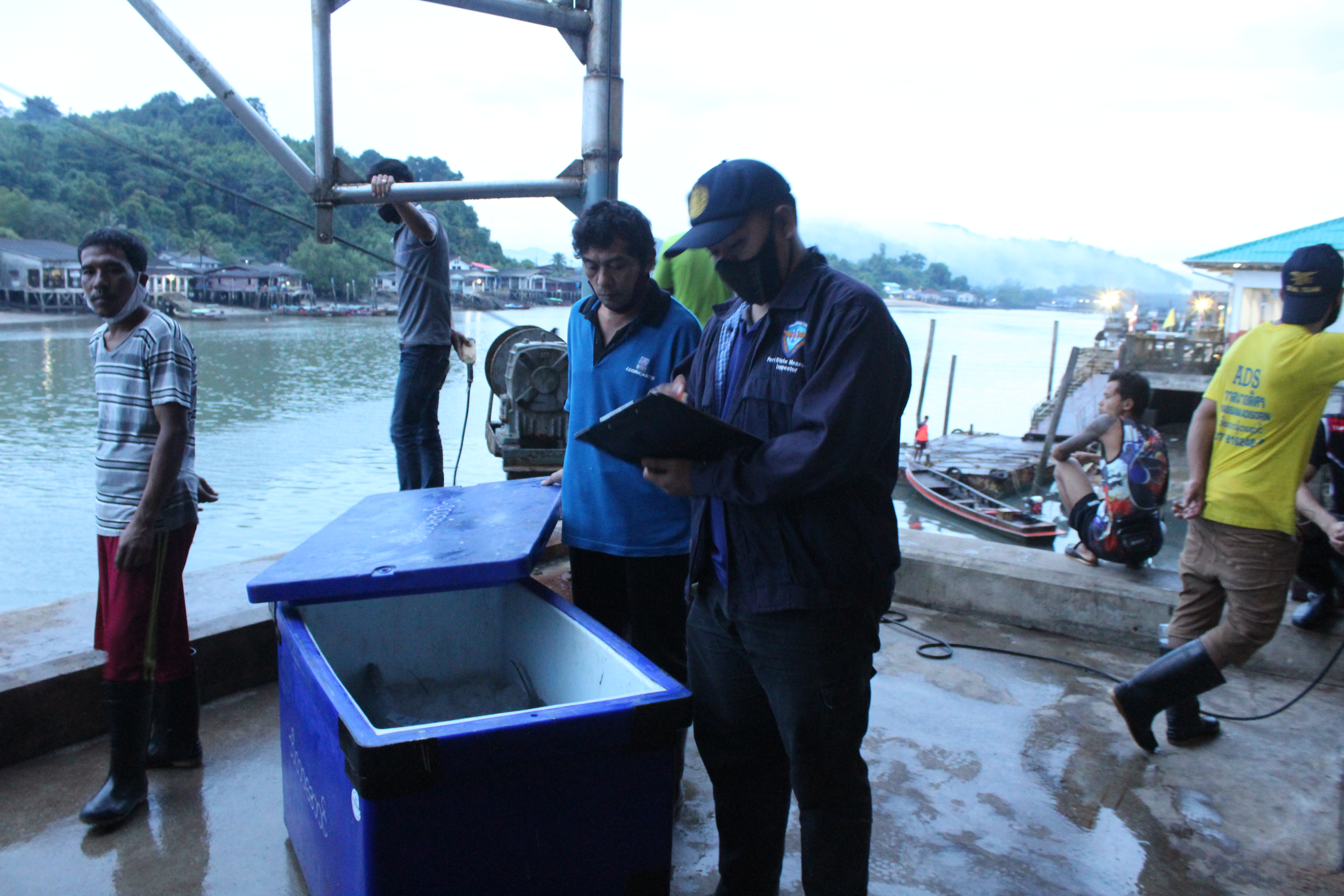 วันที่ 21 กรกฎาคม 2563 เวลา 18.00 – 19.10 น. ด่านตรวจสัตว์น้ำจังหวัดระนอง ศูนย์บริหารจัดการด่านตรวจสัตว์น้ำ เขต 3 (สงขลา) กองตรวจสอบเรือประมง สินค้าสัตว์น้ำและปัจจัยการผลิตกรมประมง จัดเจ้าหน้าที่ควบคุมการขนถ่ายสัตว์น้ำ จากเรือขนถ่าย ประเทศเมียนมา เรือชื่อ THIDAR AUNG ที่แพองค์การสะพานปลา สัตว์น้ำที่ขออนุญาตนำเข้า ได้แก่ ปลาอินทรี ปลากระเบน เป็นต้น ผลการควบคุมการขนถ่าย พบว่าชนิดและปริมาณถูกต้องตามที่ขออนุญาตนำเข้ากับด่านตรวจสัตว์น้ำจังหวัดระนอง