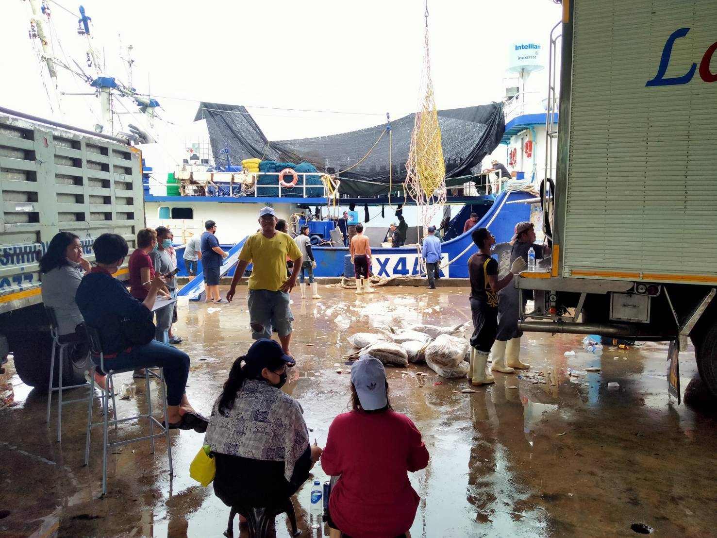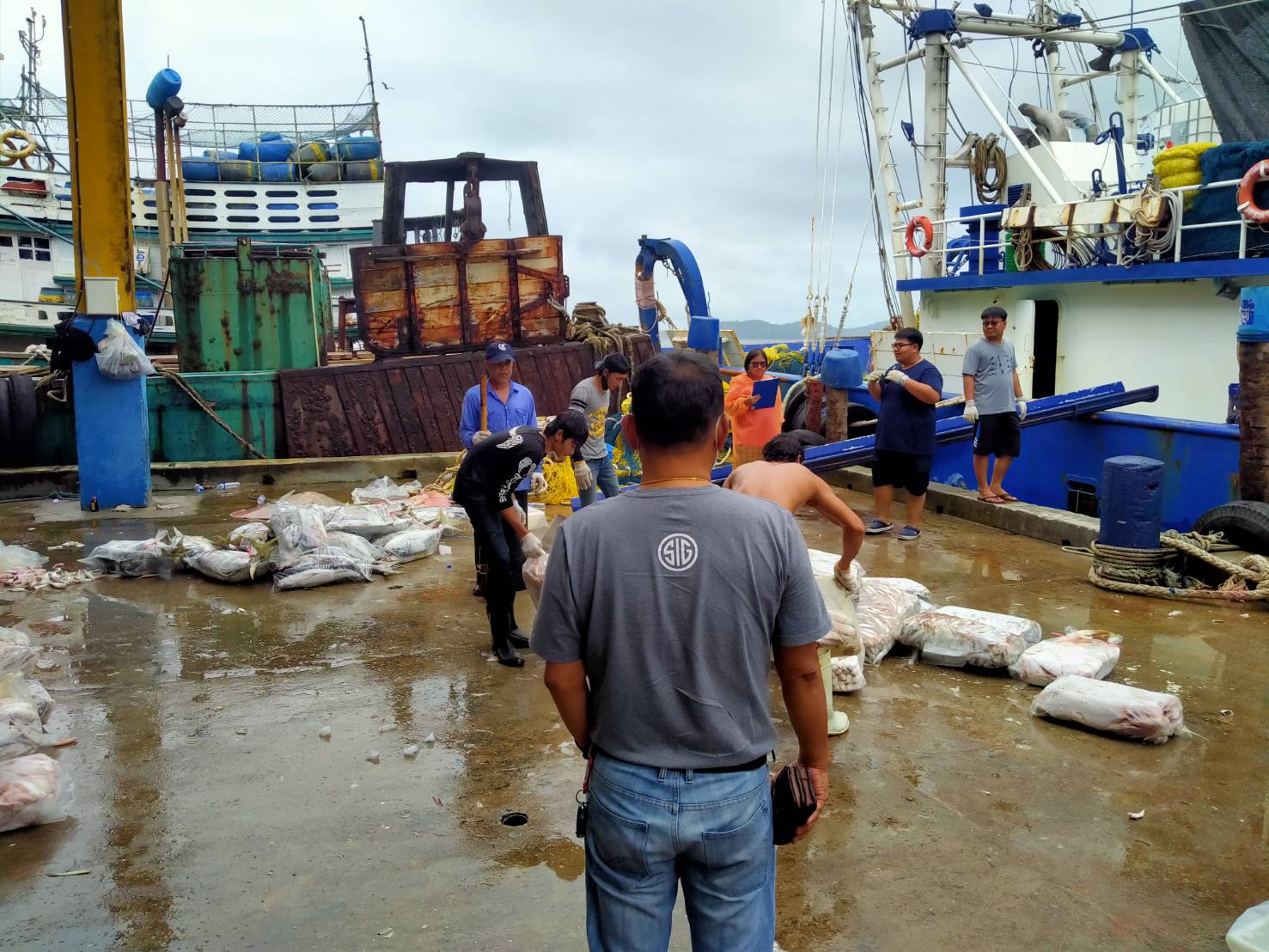 เจ้าหน้าที่ด่านตรวจสัตว์น้ำจังหวัดระนอง ร่วมกับเจ้าหน้าที่ของกองประมงนอกน่านน้ำและควบคุมการขนถ่าย พร้อมทั้งหน่วยงานอื่นๆที่เกี่ยวข้อง เข้าตรวจเรือทรัพย์ดาวประมง 5 ( วันที่ 2 ของการขนถ่าย )