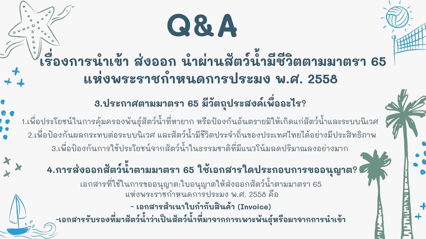 การนำเข้า ส่งออก นำผ่านสัตว์น้ำมีชีวิตตามมาตรา 65 แห่งพระราชกำหนดการประมง พ.ศ.2558