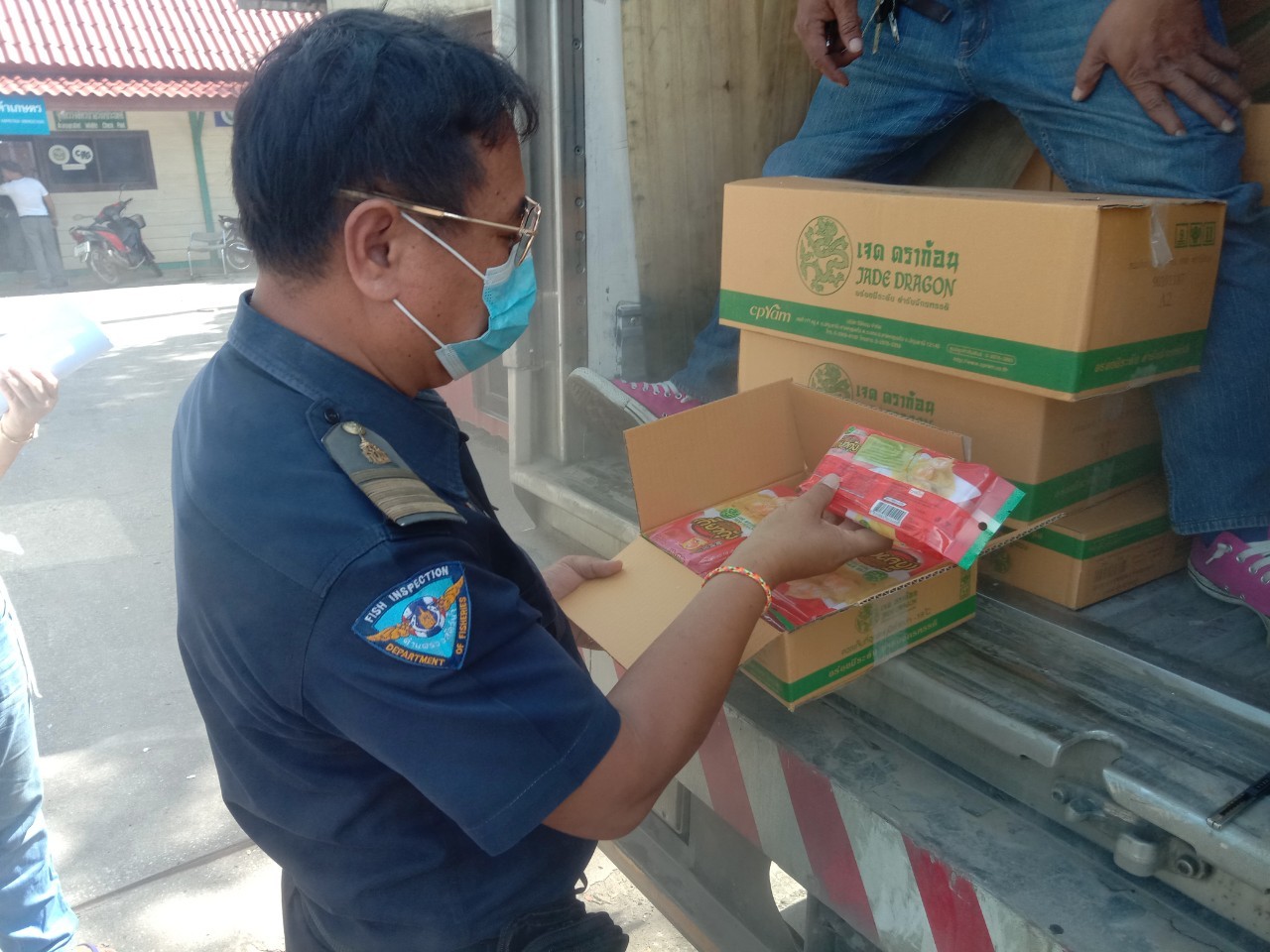 ตรวจผลิตภัณฑ์จากสัตว์น้ำ ที่ส่งออกไปยังประเทศกัมพูชา (จุดผ่านแดนถาวรคลองลึก)