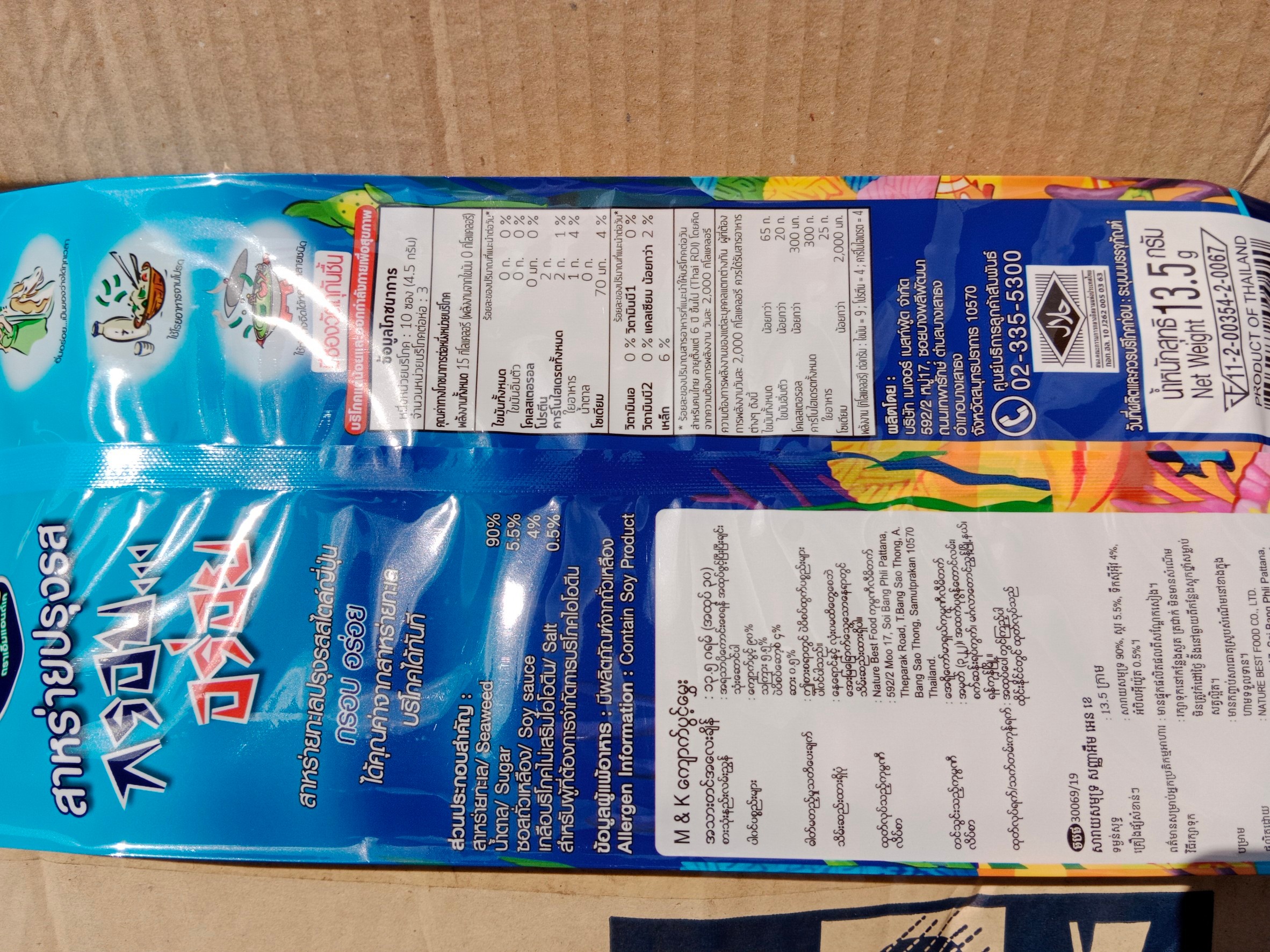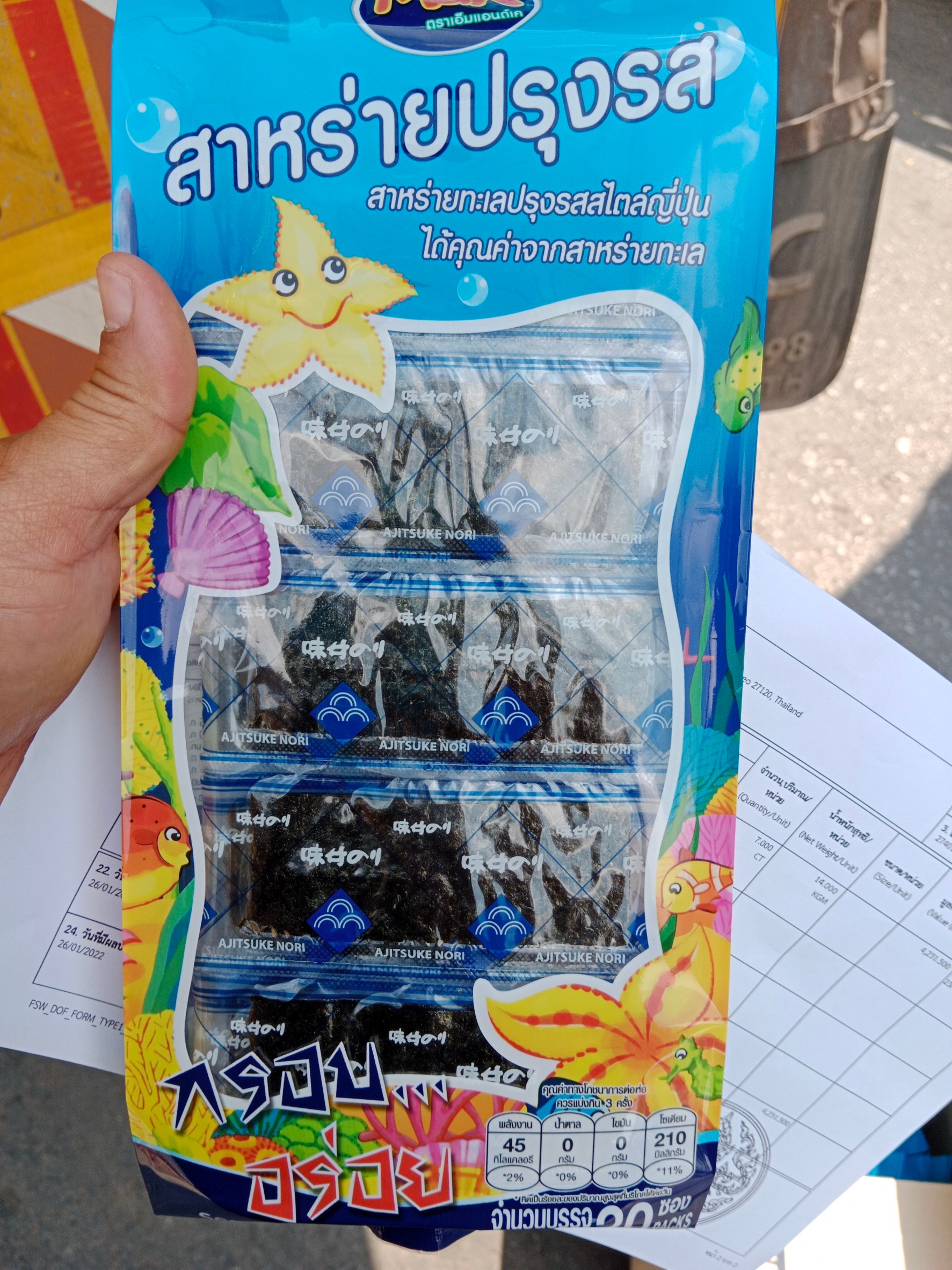 วันที่ 27 มกราคม 2565 เจ้าหน้าที่ศูนย์บริหารจัดการด่านตรวจประมงเขต 4(สระแก้ว) ได้ตรวจสอบสินค้าผลิตภัณฑ์สัตว์น้ำที่ส่งออกไปยังประเทศกัมพูชา ณ จุดผ่านแดนถาวรคลองลึก อำเภออรัญประเทศ จังหวัดสระแก้ว ได้แก่ สาหร่ายปรุงรส จากผลกาตรวจสอบสินค้าผลิตภัณฑ์สัตว์น้ำทั้งหมดมีการขออนุญาตอย่างถูกต้อง และไม่พบการทำผิดในการลักลอบนำเข้า-ส่งออกสินค้าสัตว์น้ำ