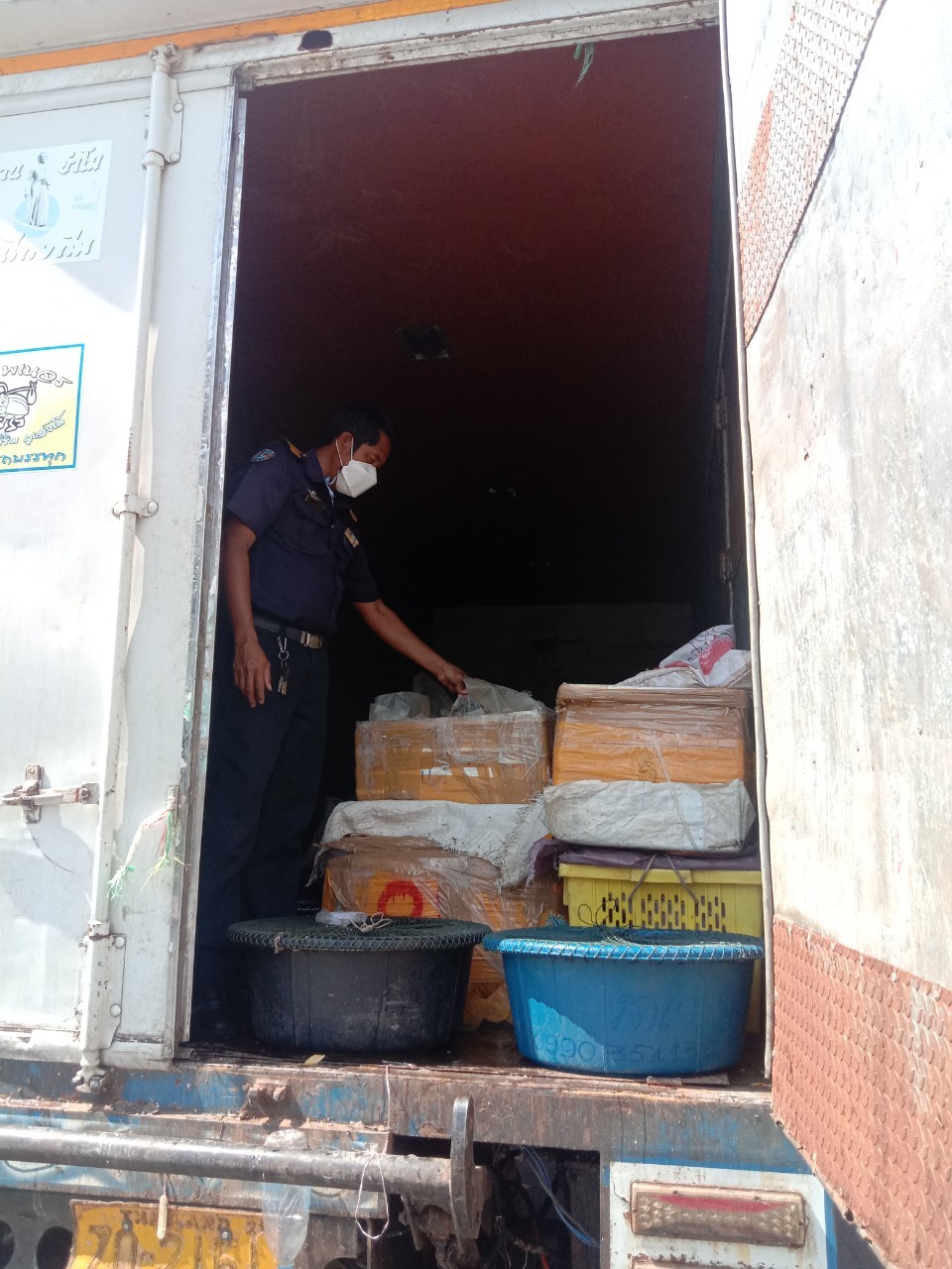 วันที่ 3 กุมภาพันธ์ 2565 เจ้าหน้าที่ศูนย์บริหารจัดการด่านตรวจประมงเขต 4(สระแก้ว)ตรวจสินค้าสัตว์น้ำที่นำเข้า ได้แก่ ปลาช่อน ปลาหลด ปลาซิวแก้ว ปลากดคัง และปลาเนื้ออ่อน เป็นต้น ตรวจสินค้าสัตว์น้ำที่ส่งออก ได้แก่ ปลานิล ปลาสวาย ปลานวลจันทร์เทศ กุ้งขาว หอยแครง และหมึกกล้วย เป็นต้น ทางจุดผ่านแดนถาวรบ้านคลองลึก อำเภออรัญประเทศ พร้อมตรวจสอบเฝ้าระวังรถสินค้าอื่นๆ เพื่อป้องกันการลักลอบนำเข้า-ส่งออกสินค้าประมงที่ผิดกฎหมาย ผลกาตรวจสอบสินค้าประมงที่นำเข้า-ส่งออกทั้งหมดมีการขออนุญาตอย่างถูกต้อง และไม่พบการทำผิดในการลักลอบนำเข้าส่งออกสินค้าสัตว์น้ำที่ผิดกฎหมาย