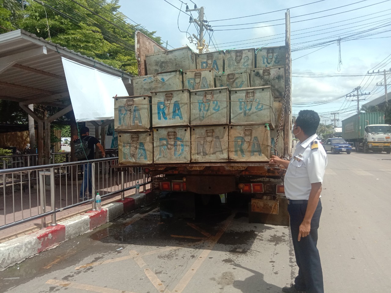 ตรวจสินค้าประมงที่นำเข้า ส่งออก ทางจุดผ่านแดนถาวรบ้านคลองลึก