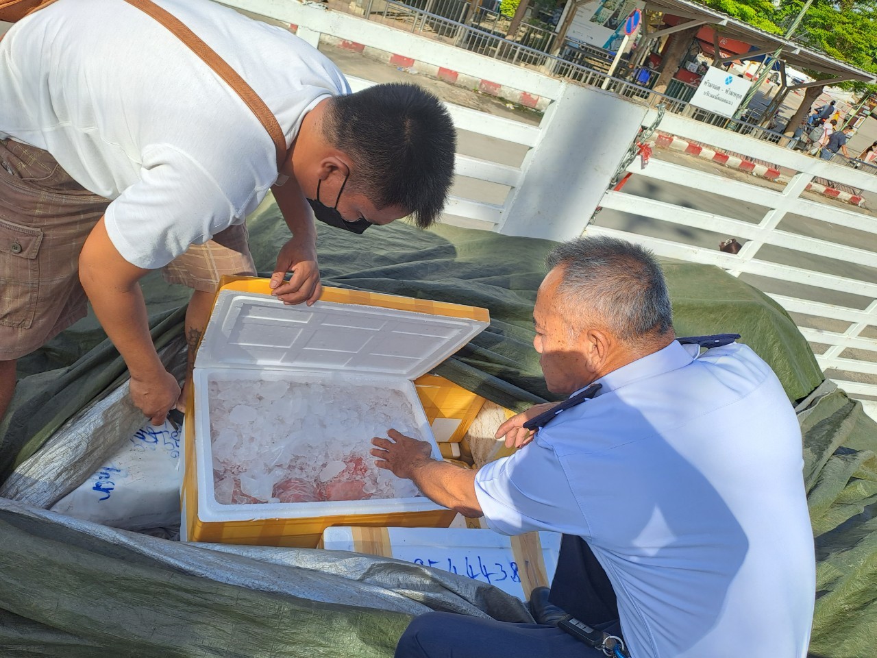 ตรวจสินค้าประมงที่นำเข้า ส่งออก ทางจุดผ่านแดนถาวรบ้านคลองลึก