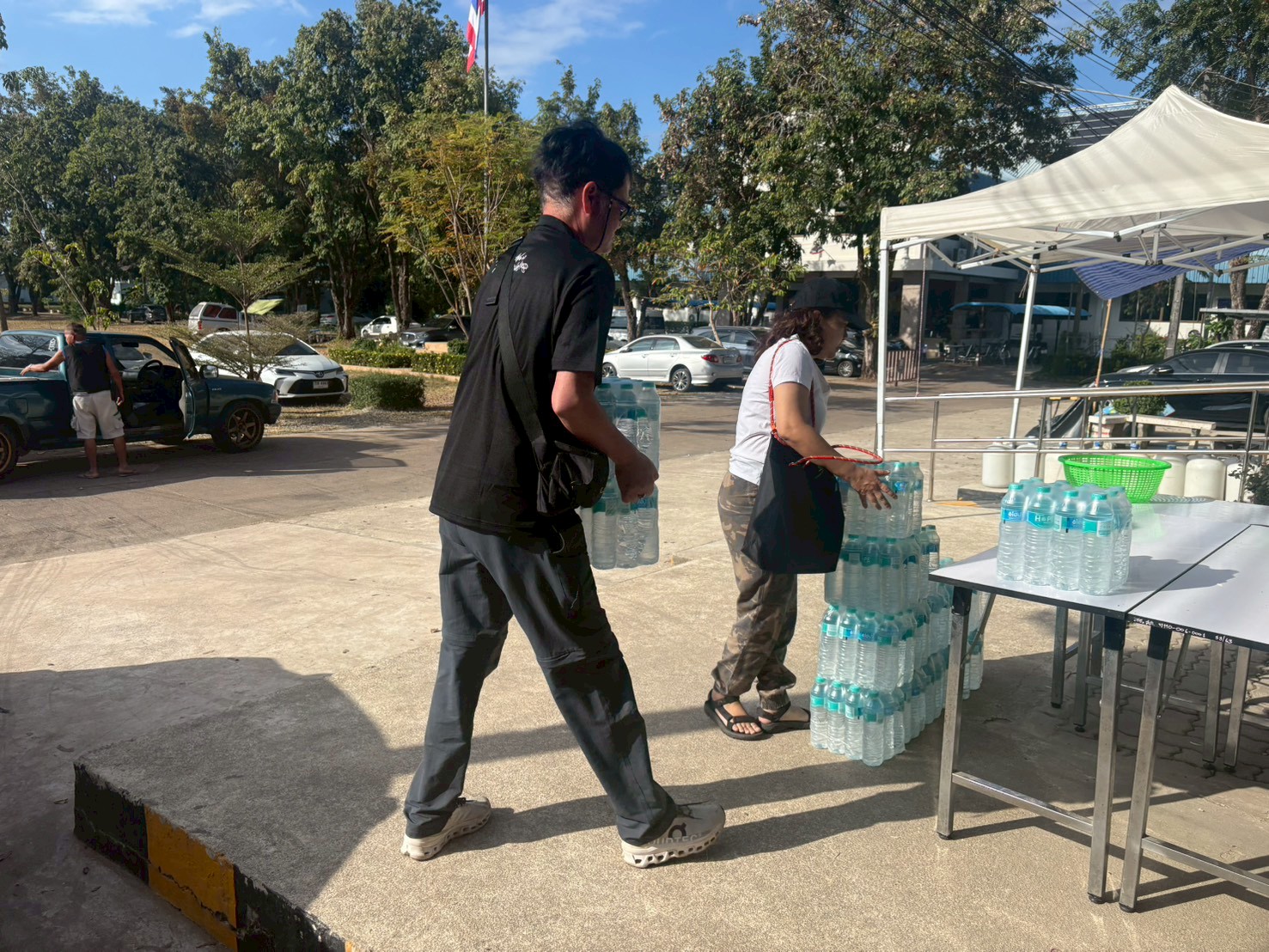 บริจาคน้ำให้กับศูนย์พักพิงชั่วคราวในพื้นที่ ตำบลท่าเกษม อำเภอเมือง จังหวัดสระแก้ว