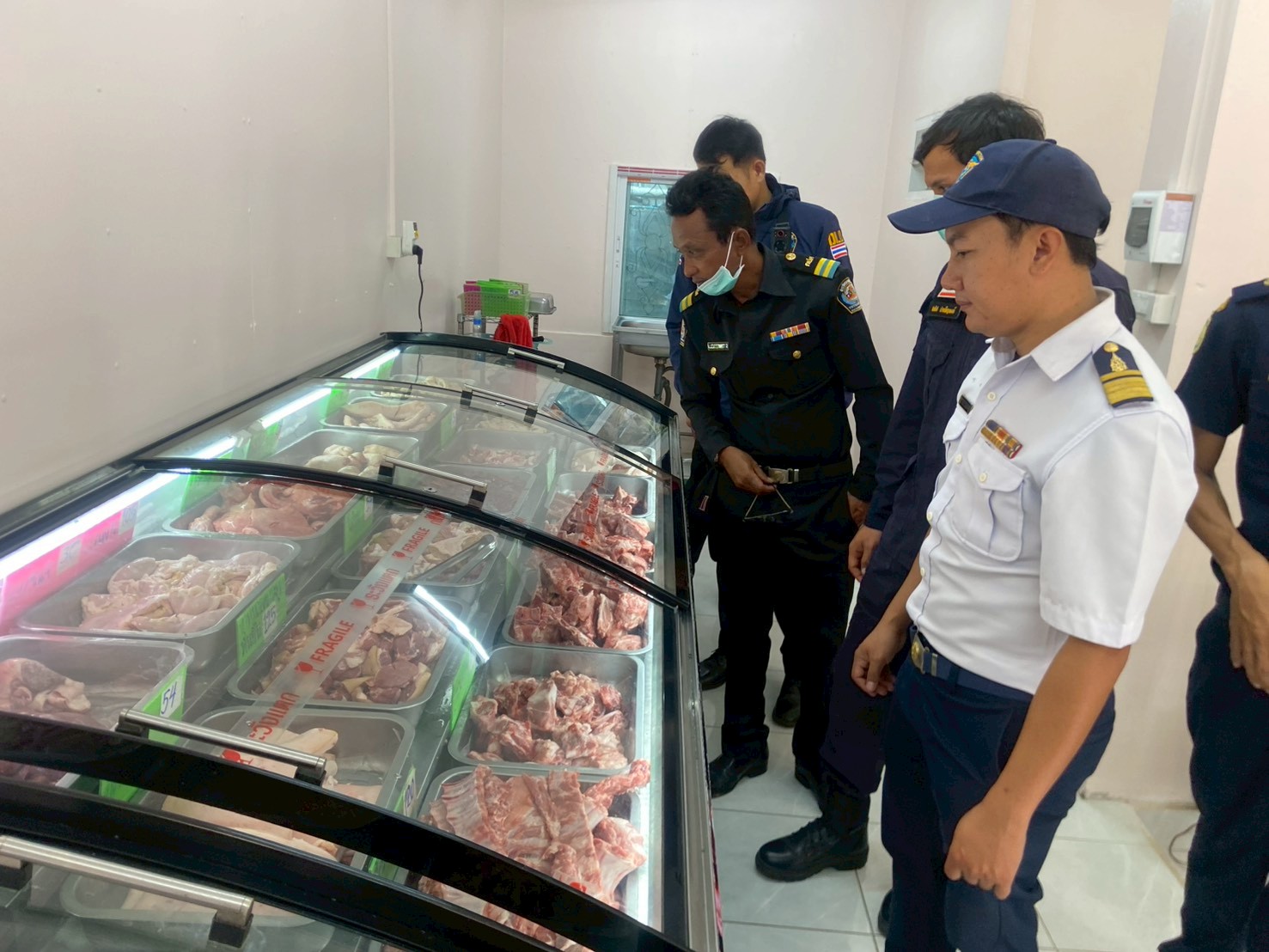เจ้าหน้าที่ศูนย์บริหารด่านตรวจประมง เขต 4 (สระแก้ว) ร่วมกับ ด่านกักกันสัตว์สระแก้ว ด่านกักกันสัตว์บุรีรัมย์ ด่านกักกันสัตว์ศรีสะเกษ ด่านกักกันสัตว์สุรินทร์ ด่านตรวจพืชอรัญประเทศ ได้เข้าดำเนินการตรวจห้องเย็น และสถานที่เก็บเนื้อสัตว์และซากสัตว์ในพื้นที่ อำเภออรัญประเทศ จังหวัดสระแก้ว จำนวน 6 ห้องเย็น ได้แก่ 1.ห้องเย็นไก่สด Indy 2.ห้องเย็นฟาร์มสมบูรณ์ ณ อรัญประเทศ 3.ร้านมั่งมีหมูไก่สด 4.ช่อลำดวนฟู้ด (สาขาอรัญประเทศ) 5.ห้องเย็น ดีฟาร์ม ฟู้ด สโตร์ 6.ห้องเย็น ไทยฟู้ดส์ เฟรช มาร์เก็ต ผลการตรวจสอบ ไม่พบการกระทำความผิด