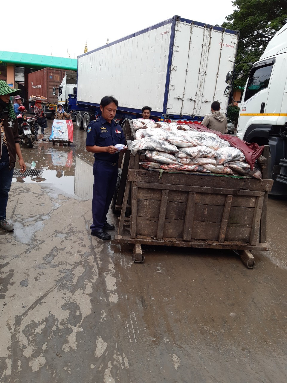 วันที่ 9 กันยายน 2562 เจ้าหน้าที่ด่านตรวจสัตว์น้ำจังหวัดสระแก้ว ตรวจสินค้าประมงที่ส่งออก ได้แก่ ปลาดุก ปลาสวาย ปลานิล กุ้งขาว หอยแครง ปลาจาระเม็ดน้ำจืด ปลาทูลัง ปลายี่สกเทศ ปลายี่สกเทศ ปลาลิ่น หมึกกล้วย เป็นต้น ทางจุดผ่านแดนถาวรคลองลึก อำเภออรัญประเทศ พร้อมตรวจสอบเฝ้าระวังรถสินค้าอื่นๆ เพื่อป้องกันการลักลอบนำเข้า-ส่งออกสินค้าประมงที่ผิดกฏหมาย ผลการตรวจสอบสินค้าประมงที่ส่งออกทั้งหมดมีการขออนุญาตอย่างถูกต้อง และไม่พบการทำผิดในการลักลอบนำเข้าส่งออกสินค้าสัตว์น้ำที่ผิดกฎหมาย