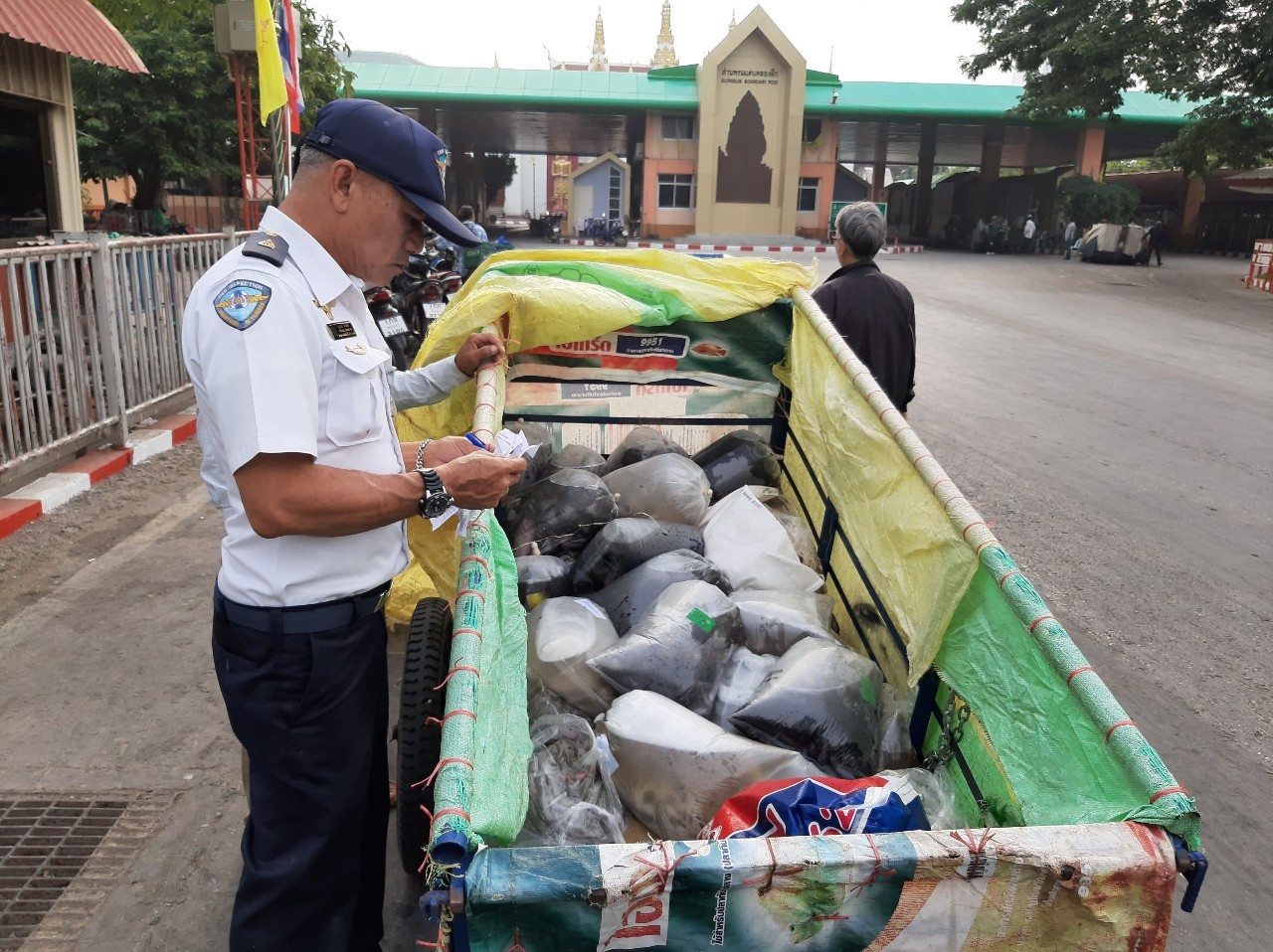 วันที่ 13 พฤศจิกายน 2562 เจ้าหน้าที่ด่านตรวจสัตว์น้ำจังหวัดสระแก้ว ตรวจสินค้าประมงที่ส่งนำเข้า ได้แก่ ปลาหมูข้างลาย ปลาช่อน ปลารากกล้วย กุ้งฝอย ปลากระดี่ เป็นต้น ตรวจสินค้าประมงที่ส่งออก ได้แก่ ปลาดุก ปลาสวาย หมึกกล้วย กุ้งขาว ปลาทูลัง ปลานิลแดง ปลานวลจันทร์เทศ ปลาเปคูแดง ปลาซาบะ เป็นต้น ทางจุดผ่านแดนถาวรคลองลึก อำเภออรัญประเทศ พร้อมตรวจสอบเฝ้าระวังรถสินค้าอื่นๆ เพื่อป้องกันการลักลอบนำเข้า-ส่งออกสินค้าประมงที่ผิดกฏหมาย ผลการตรวจสอบสินค้าประมงที่ส่งออกทั้งหมดมีการขออนุญาตอย่างถูกต้อง และไม่พบการทำผิดในการลักลอบนำเข้าส่งออกสินค้าสัตว์น้ำที่ผิดกฎหมาย