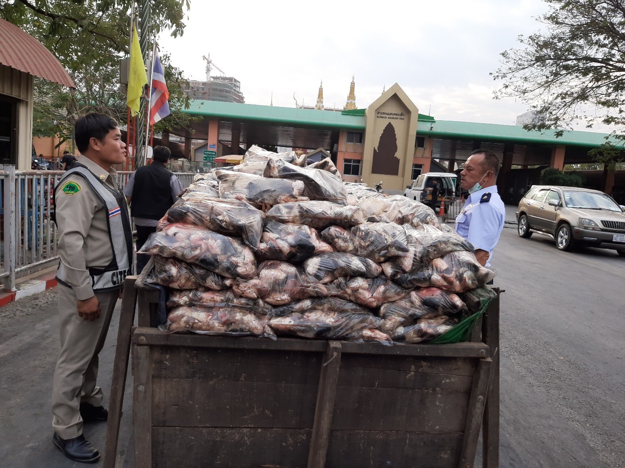 วันที่ 12 กุมภาพันธ์ 2563 เจ้าหน้าที่ด่านตรวจสัตว์น้ำจังหวัดสระแก้ว ตรวจสินค้าประมงที่นำเข้า ได้แก่ ปลาช่อน ปลากระดี่ ปลาหลด ปลารากกล้วย ปลาแดง กุ้งฝอย เป็นต้น ตรวจสินค้าประมงที่ส่งออก ได้แก่ ปลานิล หอยแครง ปลาดุก ปลาสวาย ปลาชะโด กุ้งขาว กุ้งก้ามกราม ปลาตะเพียน ปลานวลจันทร์เทศ ปลายี่สกเทศ ปลาจีน เป็นต้น ทางจุดผ่านแดนถาวรคลองลึก อำเภออรัญประเทศ พร้อมตรวจสอบเฝ้าระวังรถสินค้าอื่นๆ เพื่อป้องกันการลักลอบนำเข้า-ส่งออกสินค้าประมงที่ผิดกฏหมาย ผลการตรวจสอบสินค้าประมงที่นำเข้า-ส่งออกทั้งหมดมีการขออนุญาตอย่างถูกต้อง และไม่พบการทำผิดในการลักลอบนำเข้าส่งออกสินค้าสัตว์น้ำที่ผิดกฎหมาย