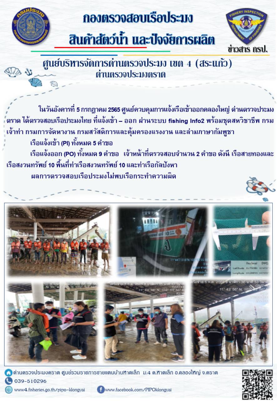 ผลการปฏิบัติงานประจำวันที่ 5 กรกฏาคม 2565