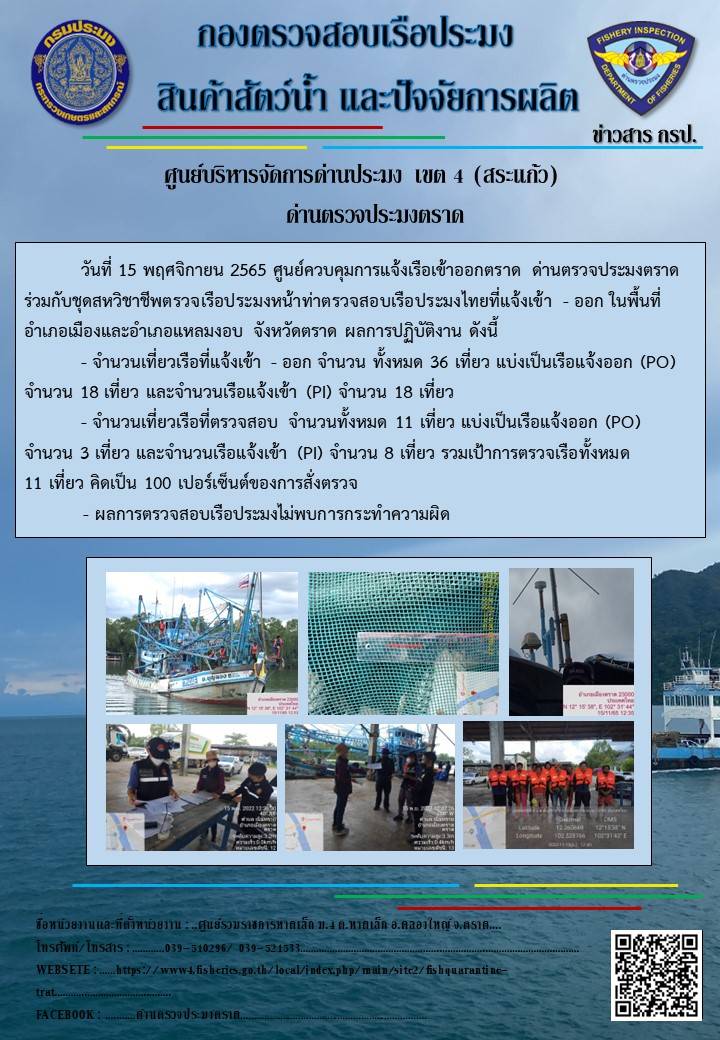ผลการปฏิบัติงานประจำวันที่ 15 พฤศจิกายน 2565