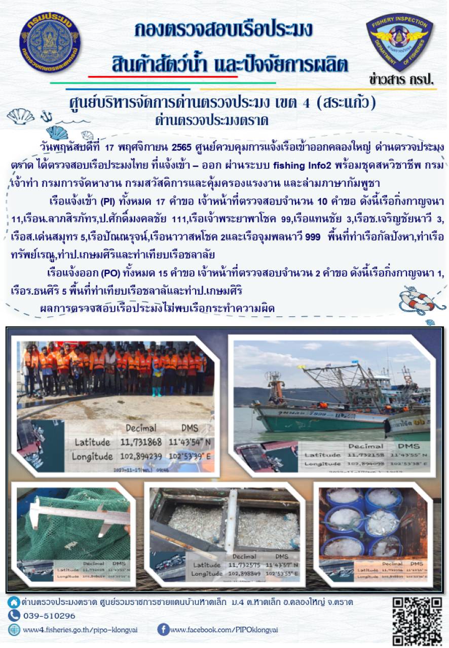 ผลการปฏิบัติงานประจำวันที่ 17 พฤศจิกายน 2565