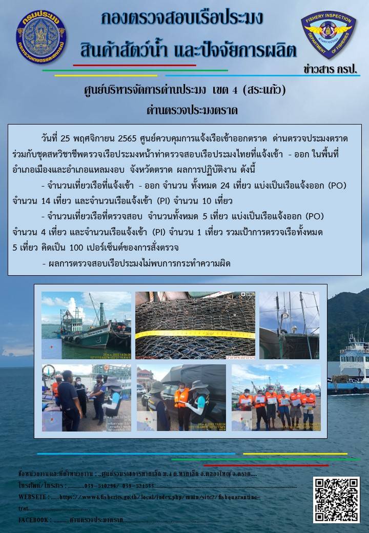 ผลการปฏิบัติงานประจำวันที่ 25 พฤศจิกายน 2565