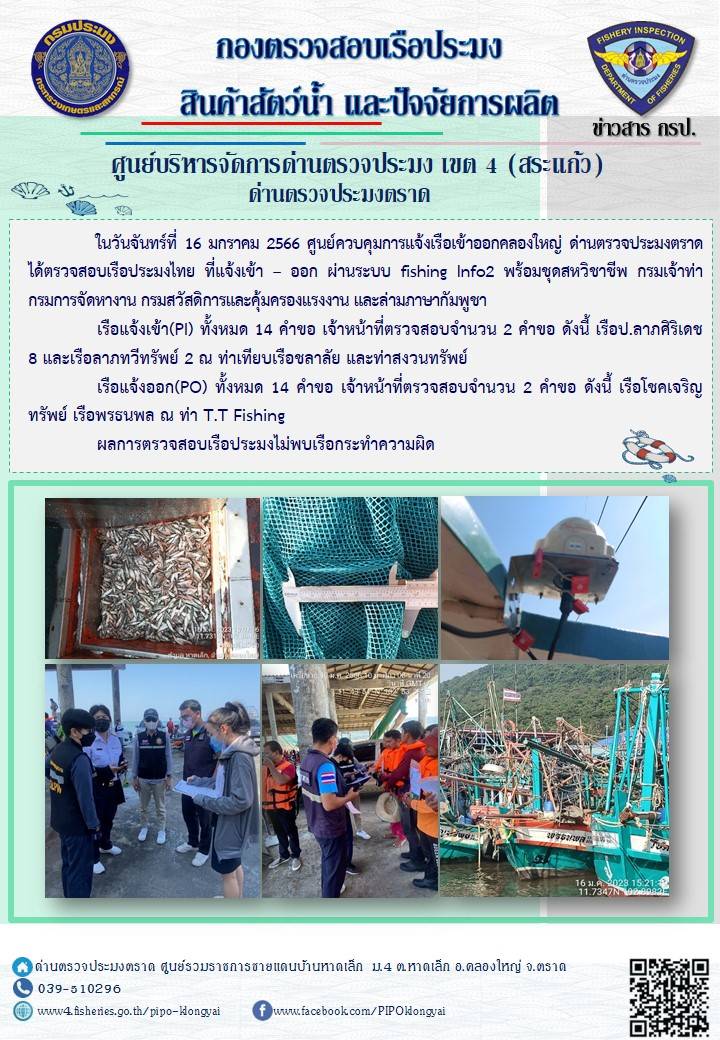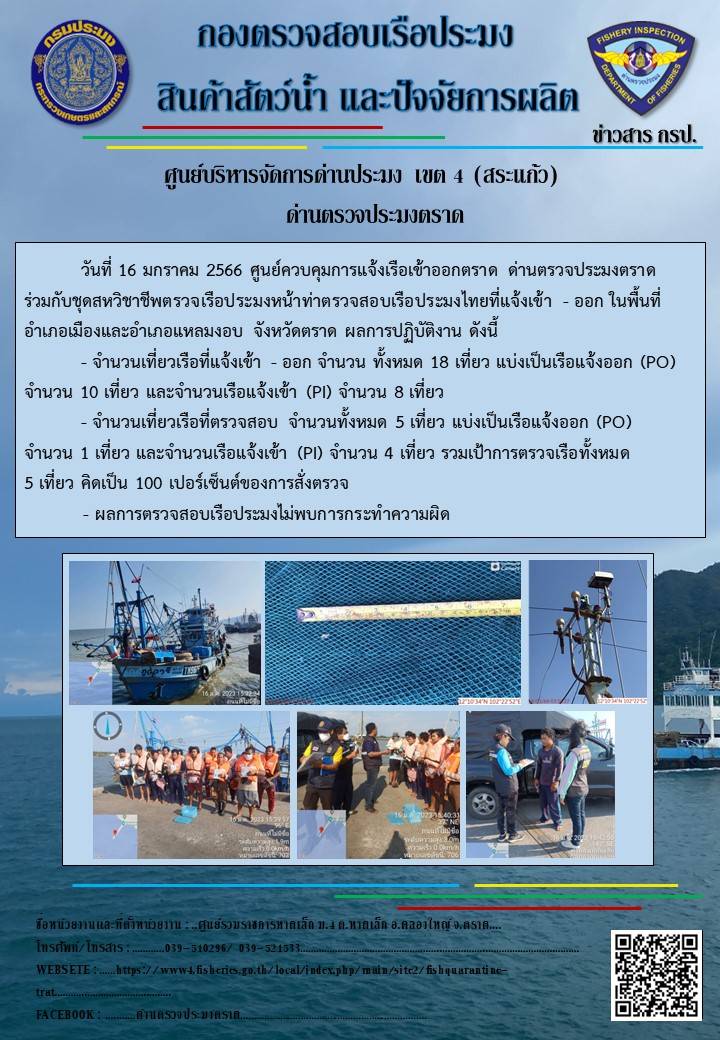 ผลการปฏิบัติงานประจำวันที่ 16 มกราคม 2566