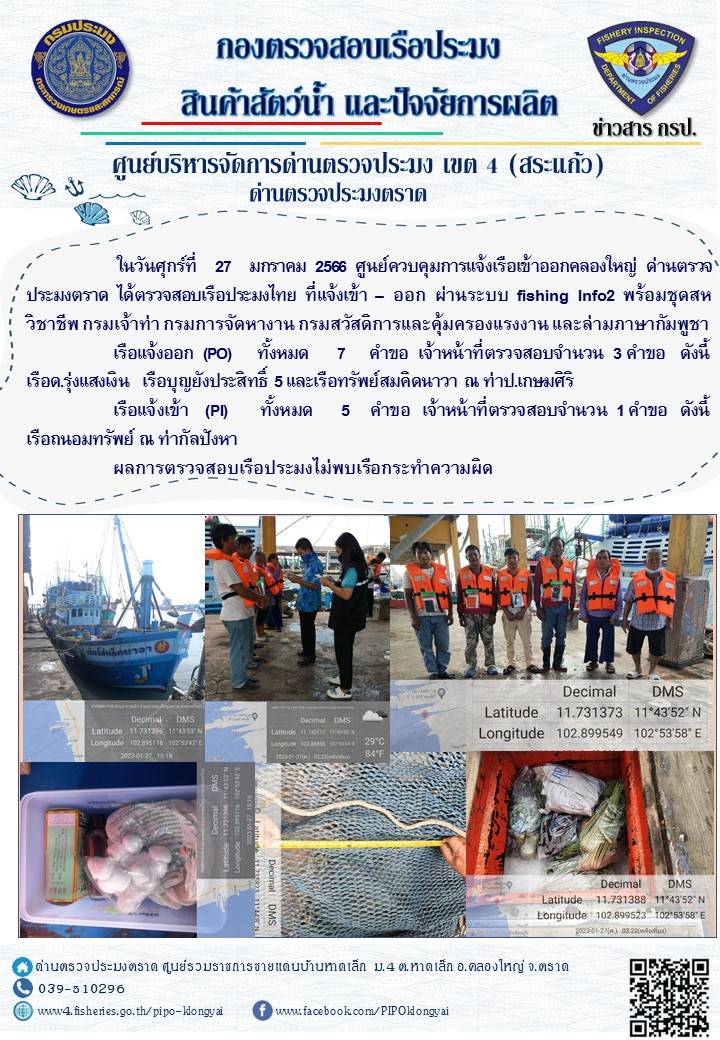 ผลการปฏิบัติงานประจำวันที่ 27 มกราคม 2566