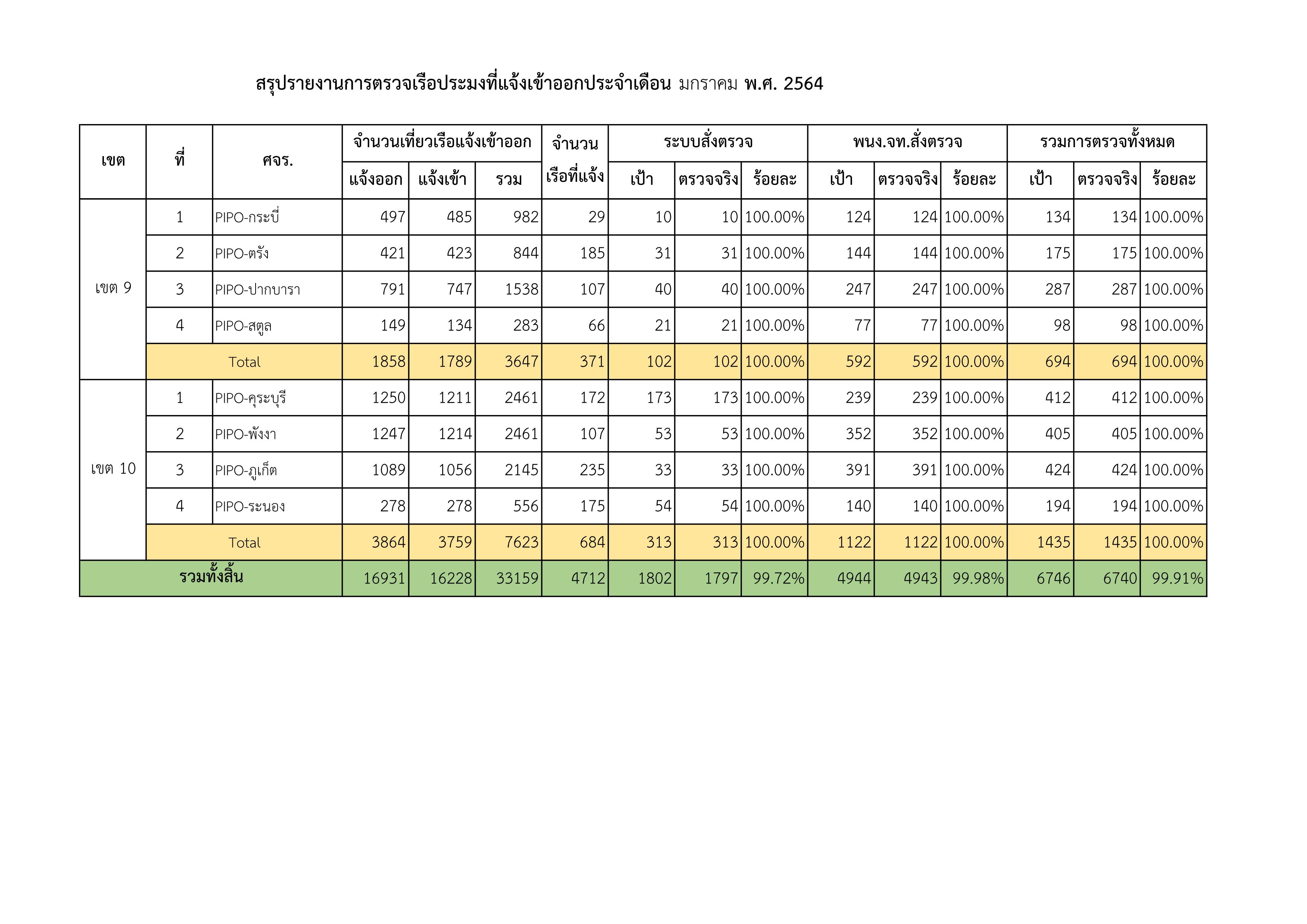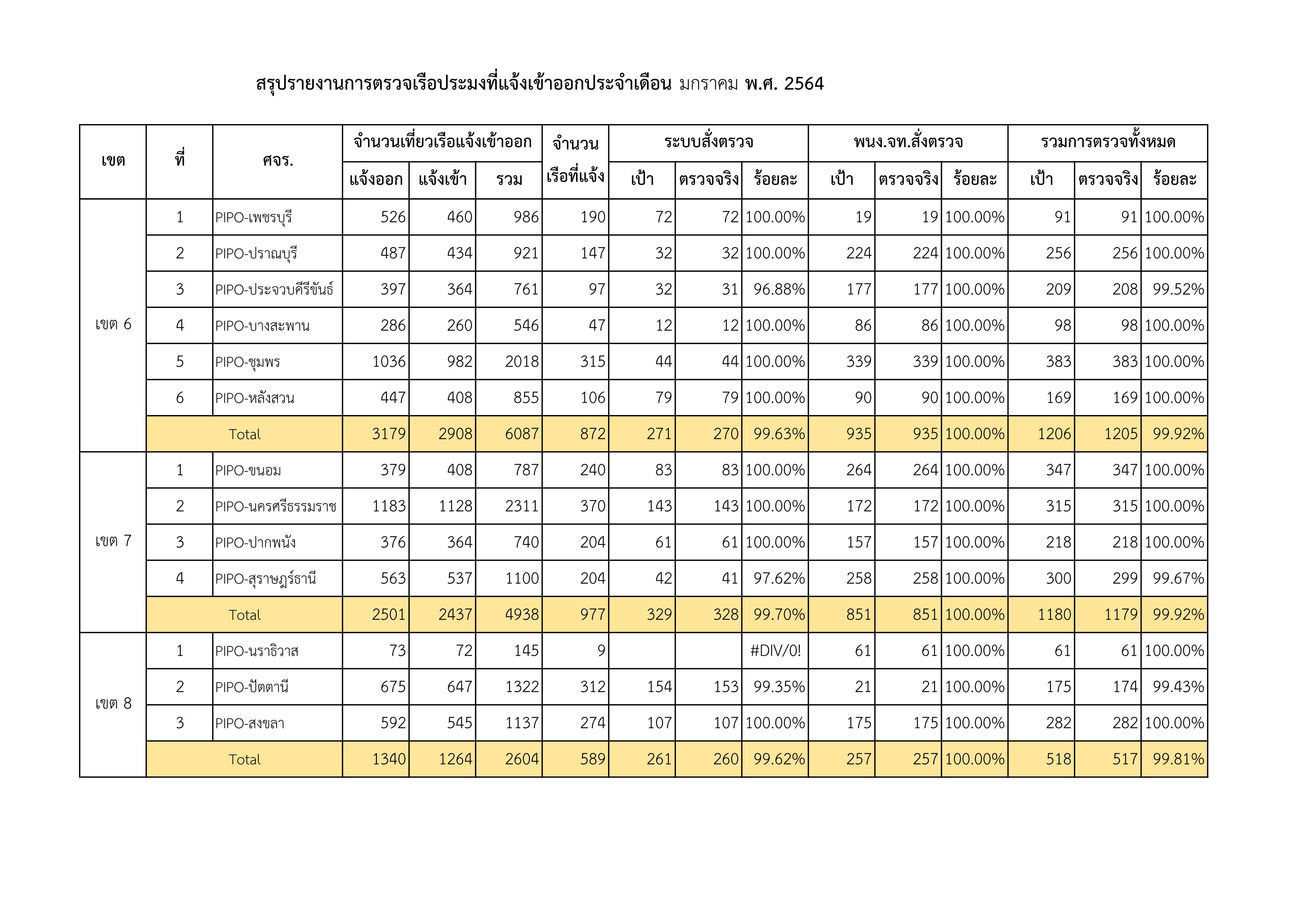 รายงานการตรวจสอบเรือประมงไทยที่แจ้งเข้าออก ประจำเดือน มกราคม 2564