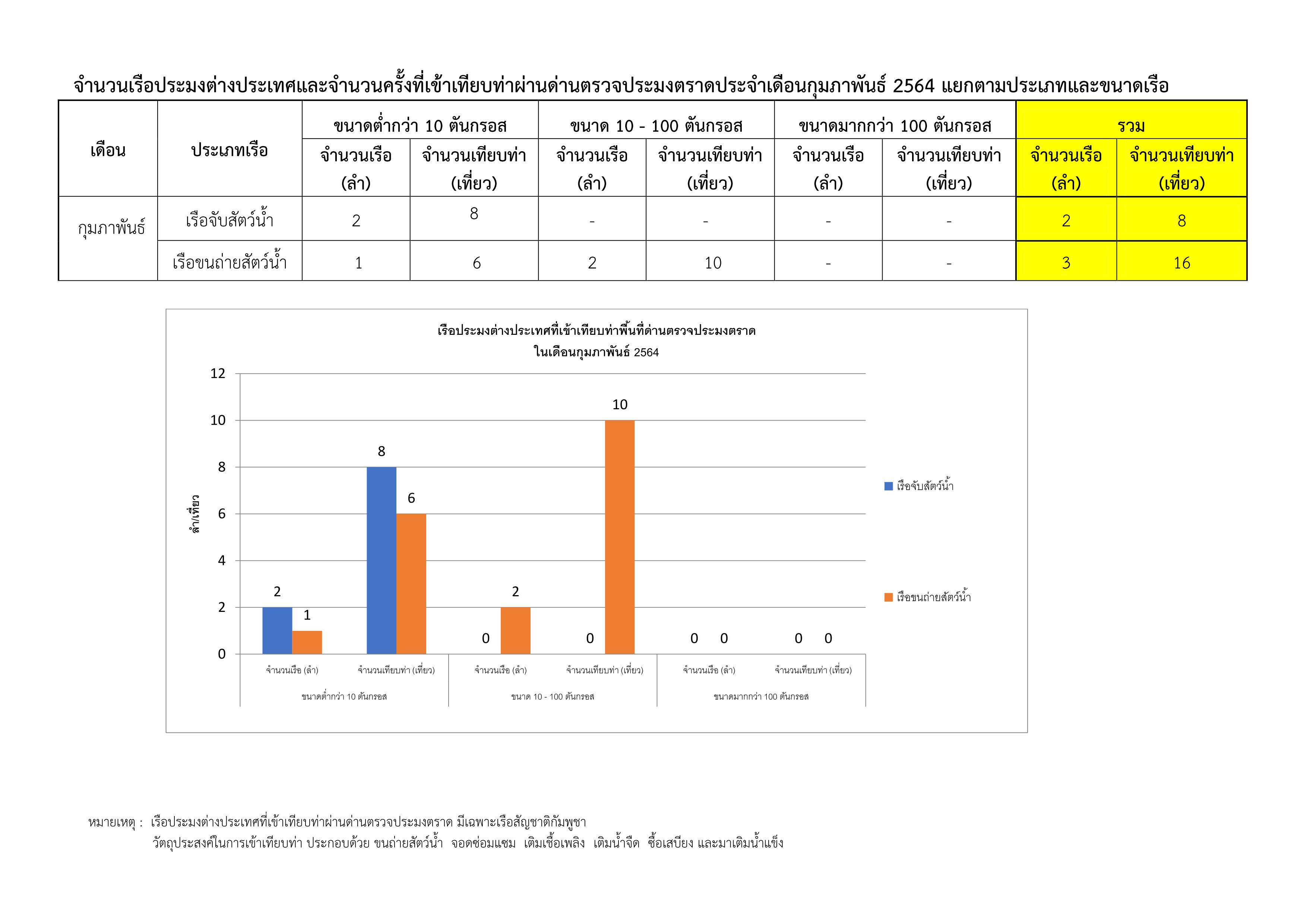 รายงานการนำเข้า - ส่งออกสินค้าสัตว์น้ำและผลิตภัณฑ์สัตว์น้ำ และ จำนวนเรือประมงต่างประเทศที่เข้าเทียบท่า ประจำเดือน กุมภาพันธ์ 2564