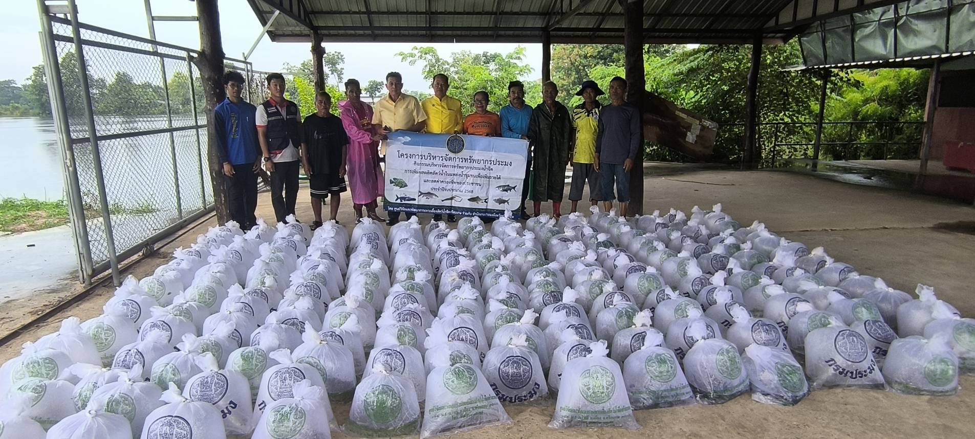 ปลาบึก 200ตัวโดยมีวัตถุประสงค์เพื่อเพิ่มผลผลิตสัตว์น้ำในแหล่งน้ำชุมชน สามารถนำไปใช้ในการบริโภคและสร้างรายได้ให้กับประชาชนในพื้นที่ ลดค่าครองชีพและเสริมสร้างความมั่นคงทางอาหาร