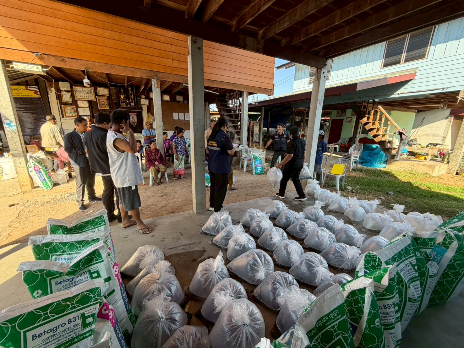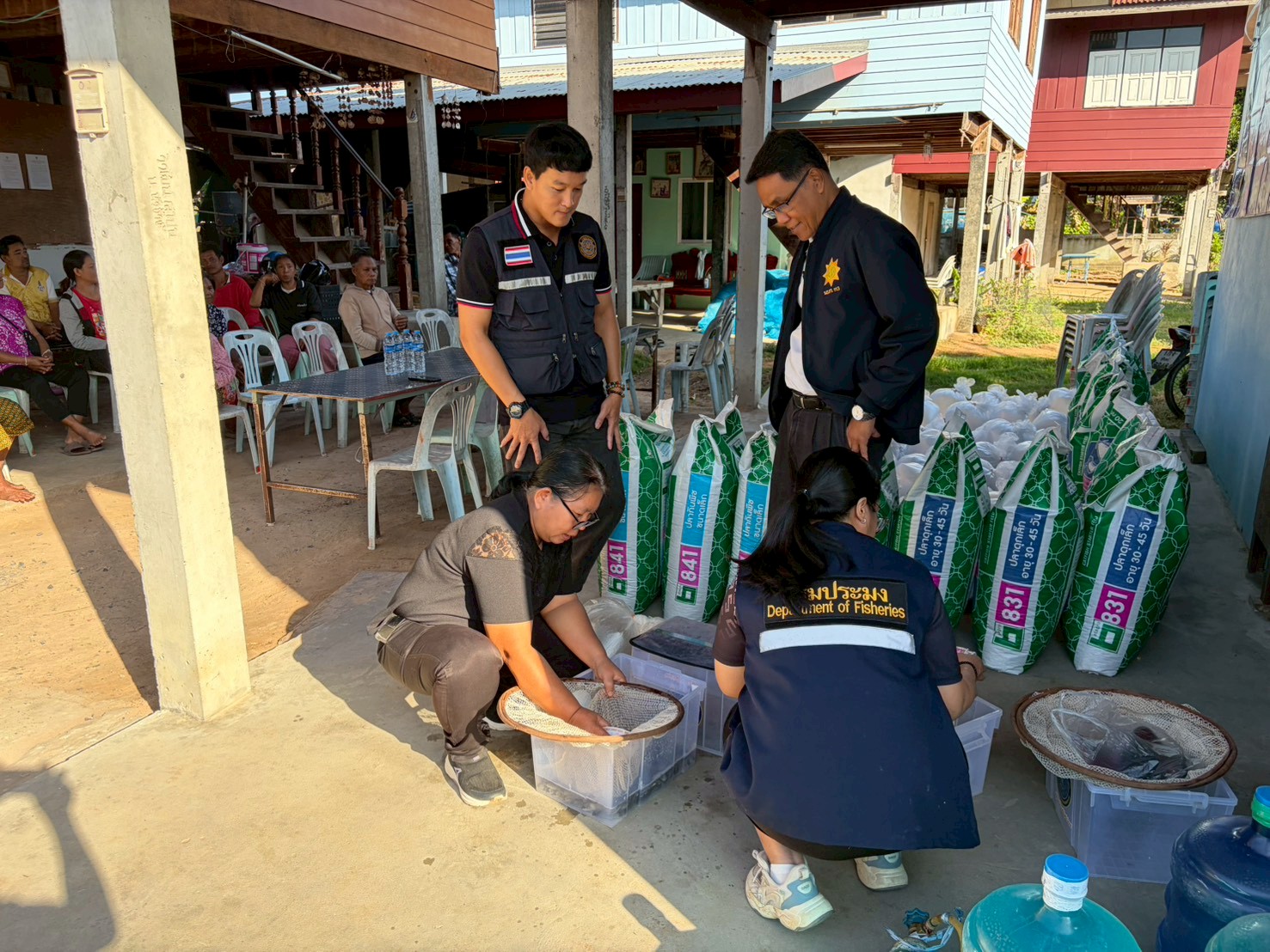 สำนักงานประมงจังหวัดศรีสะเกษ โดยนายอิสระ สุวิทยาภรณ์ ประมงจังหวัดศรีสะเกษ พร้อมด้วยนายประจักษ์ แสนภักดี หัวหน้ากลุ่มบริหารจัดการด้านการประมง นายสุพรชัย พนารัตนะโสภณ ประมงอำเภออุทุมพรพิสัย นางเสาวณี แสนโคก ประมงอำเภอเมืองศรีสะเกษ และเจ้าหน้าที่กลุ่มฯ  ลงพื้นที่มอบปัจจัยการผลิตในการส่งเสริมการเพาะเลี้ยงสัตว์น้ำ โครงการส่งเสริม และพัฒนาอาชีพเพื่อแก้ไขปัญหาที่ดินทำกินของเกษตรกร ประจำปีประมาณ พ.ศ. 2569 ให้กับเกษตรกรที่เข้าร่วมโครงการฯ จำนวน 16 ราย ประกอบไปด้วย พันธุ์ปลาดุกรัสเซีย จำนวน 5,800 ตัว พันธุ์ปลานิล จำนวน 3,450 ตัว พันธุ์ปลาตะเพียน จำนวน 3,450 ตัว  อาหารปลาดุกเล็ก จำนวน 10 กระสอบ และอาหารปลากินพืชเล็ก จำนวน 6 กระสอบ ณ ที่ทำการผู้ใหญ่บ้าน หมู่ที่ 7 ตำบลตาโกน อำเภอเมืองจันทร์ จังหวัดศรีสะเกษ