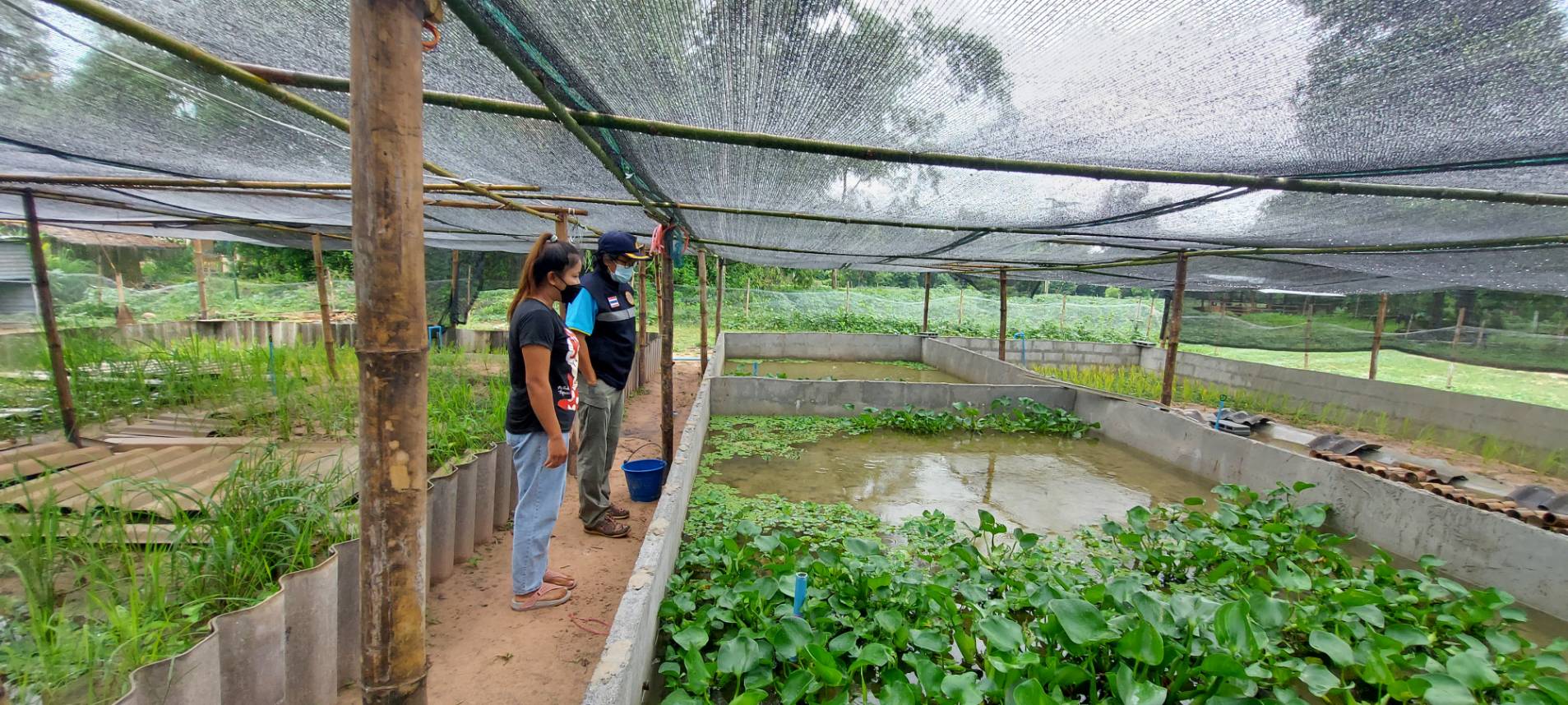 ประมงอำเภอตระการพืชผล ผู้รับผิดชอบงานด้านการประมงอำเภอดอนมดแดง สำรวจบ่อเลี้ยงปลาและให้คำแนะนำเกี่ยวกับการเลี้ยงปลา การเลี้ยงปูนา การเลี้ยงหอยเชอรี่และการรักษาโรคสัตว์น้ำ