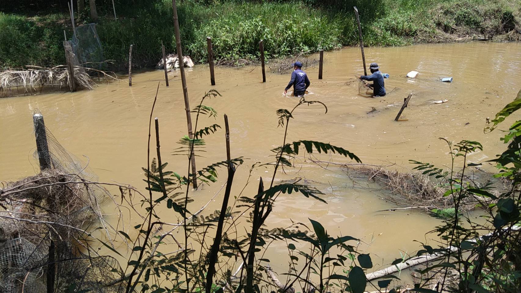 การออกตรวจควบคุมการทำการประมงในช่วงฤดูสัตว์น้ำจืดมีไข่ วางไข่ เลี้ยงตัวอ่อน ในพื้นที่ลำน้ำห้วยซอม ตรวจพบมีการลักลอบใช้เครื่องมือประมงทำการประมงโดยวิธีการกั้นทางเดินสัตว์น้ำ ในช่วงฤดูสัตว์น้ำจืดมีไข่ วางไข่ เลี้ยงตัวอ่อน (กางกั้นประกอบลอบนอน)