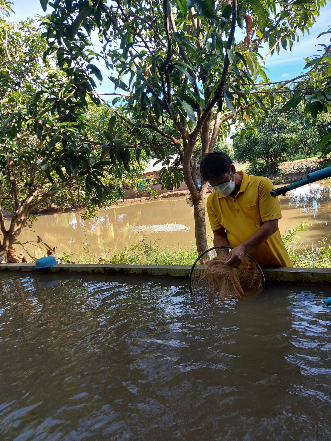 วันที่ 16 สิงหาคม 2564 นายบัญญัติ ไฝ่จิต ประมงอำเภอพิบูลมังสาหาร รับผิดชอบอำเภอตาลสุม ลงพื้นที่ สำรวจประเมินผลผลิตสัตว์น้ำ ตามโครงการเกษตรกรรมยั่งยืน กิจกรรมส่งเสริมเกษตรทฤษฎีใหม่ด้านประมง  ปี 2564 รายนายพนม พิมพ์รัตน์ หมู่5 บ้านนามน ต.ตาลสุม อำเภอตาลสุม พบปลาตะเพียนเจริญเติบโตดี ขนาดความยาวประมาณ 12 เซนติเมตร ประมาณ20ตัว/กิโลกรัม และดูกุ้งก้ามกราม ที่รอจะนำปล่อยลงเลี้ยงหลังจากเตรียมบ่อเสร็จแล้ว