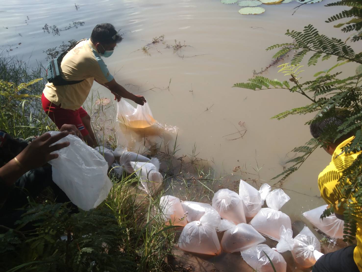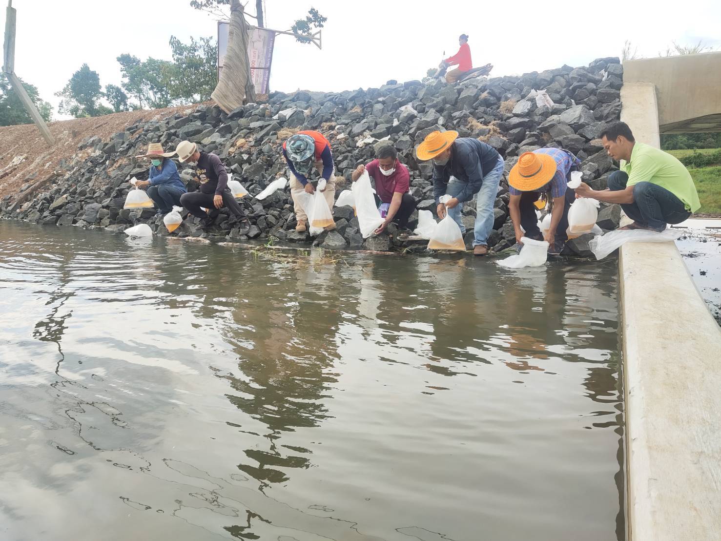 ประมงอำเภอน้ำยืนมอบพันธุ์กุ้งก้ามกราม อำเภอน้ำยืน อำเภอน้ำขุ่น ตามโครงการบริหารจัดการทรัพยากรประมง ประจำปีงบประมาณ 2565
