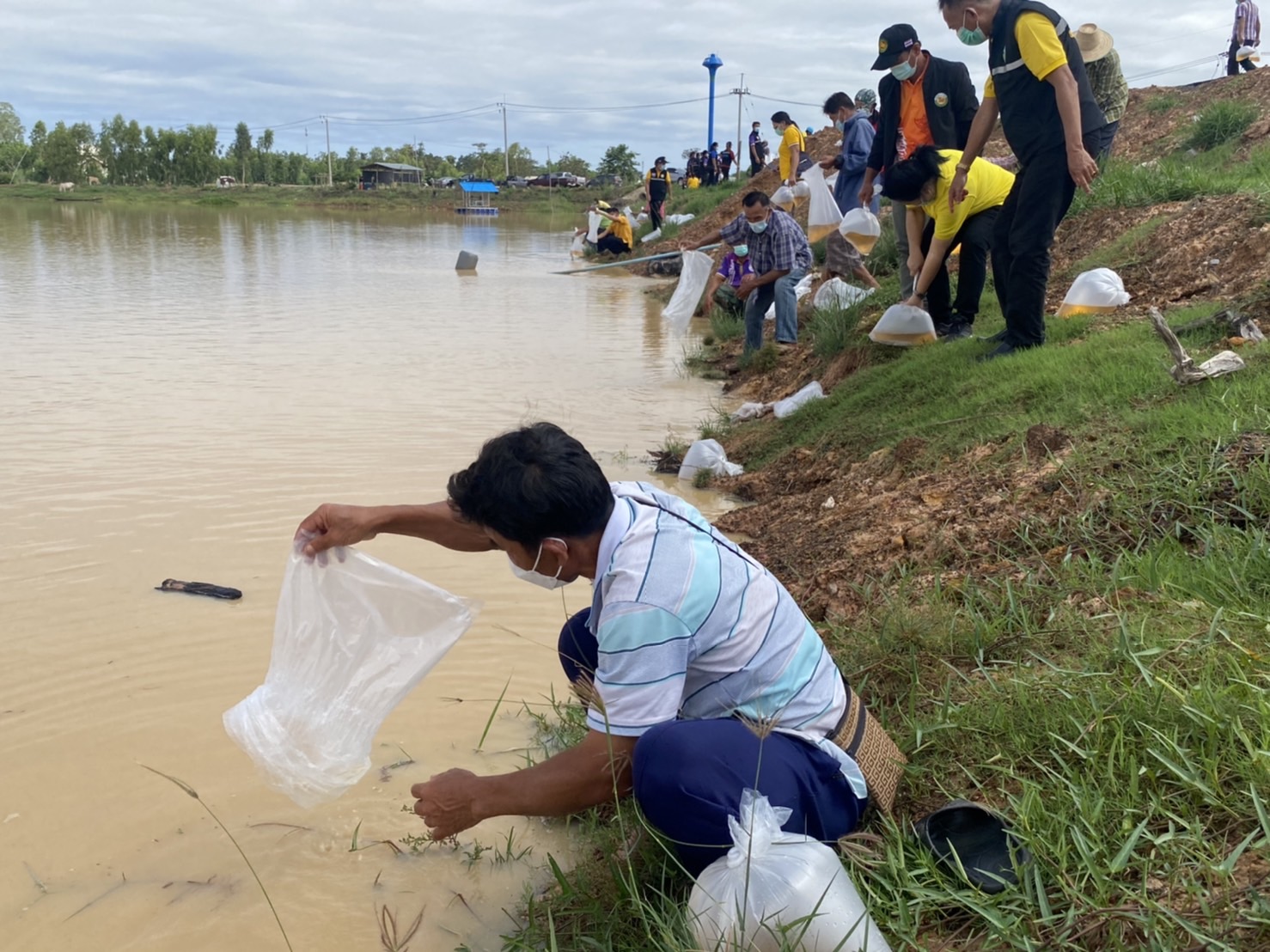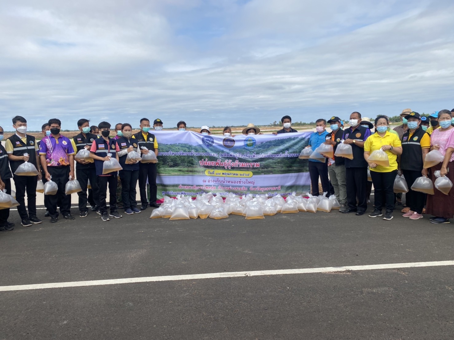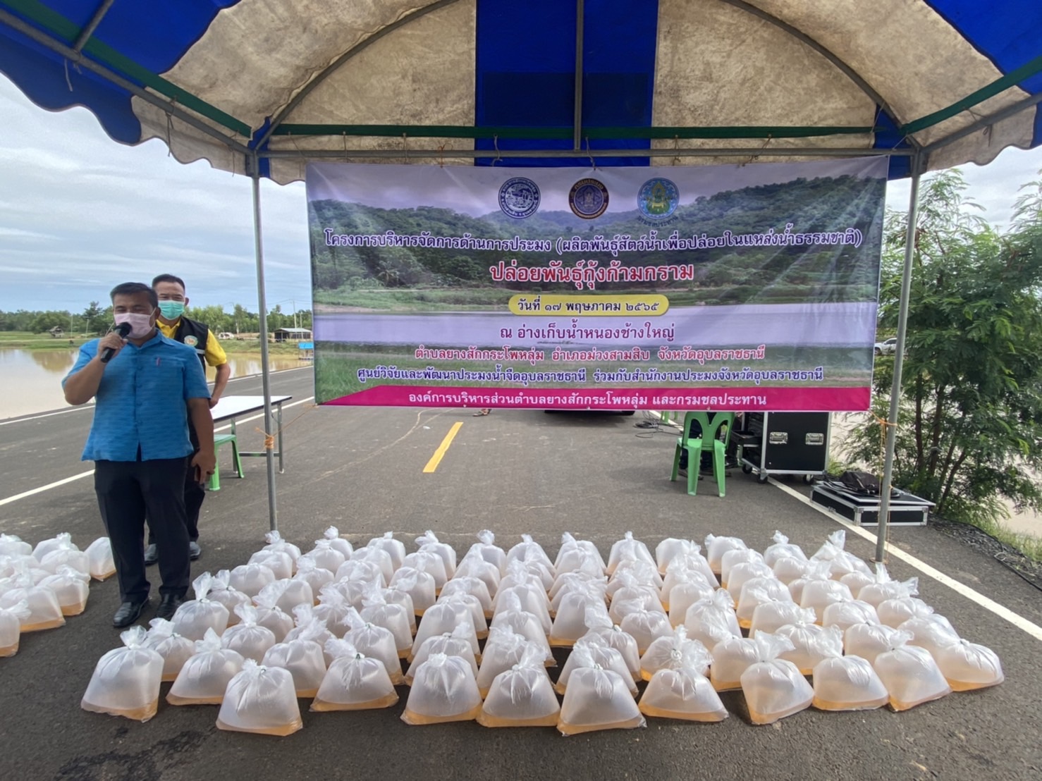 สำนักงานประมงจังหวัดอุบลราชธานีร่วมกับหน่วยงานนายกตำบลยางสักกระโพหลุ่มร่วมกันปล่อยพันธุ์กุ้งก้ามกราม