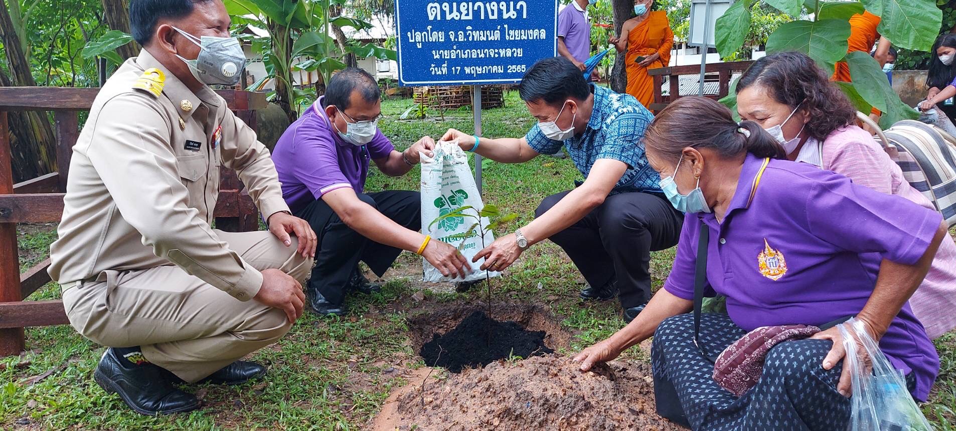 3.วัดโพนแอวขัน เข้าพบเจ้าอาวาส และถวายเครื่องสังฆทาน พร้อมปลูกต้นยางนา