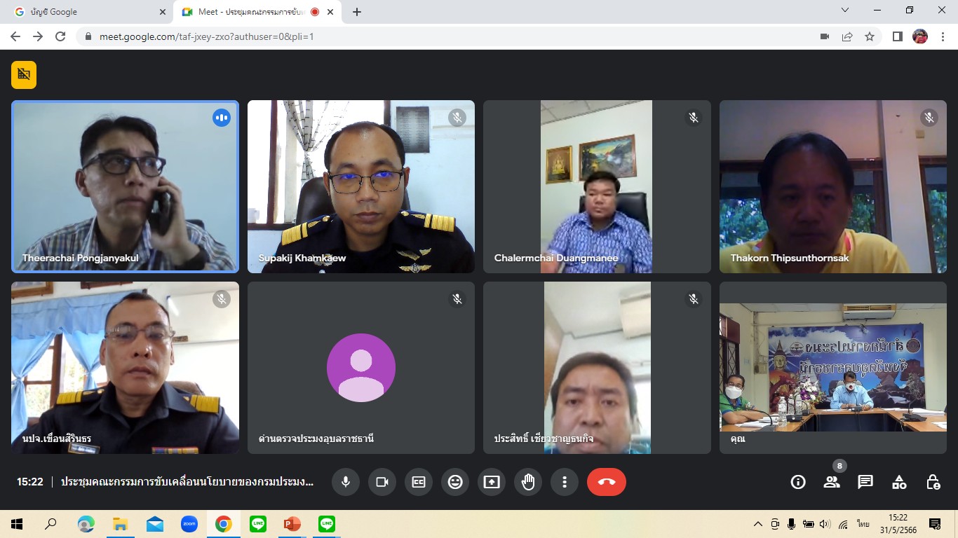 วันพุธที่ 31 พฤษภาคม พ.ศ. 2566 เวลา 15.00 น. นายสุริยันต์ วรรณวงษ์ ประมงจังหวัดอุบลราชธานี พร้อมด้วย คณะกรรมการในสังกัดกรมประมง เข้าร่วมประชุมคณะกรรมการขับเคลื่อนนโยบาย ของกรมประมง (FIsheries Co-ordinator : FC)  ครั้งที่ 3/2566 ปีงบประมาณ 2566  ณ ห้องประชุมสำนักงานประมงจังหวัดอุบลราชธานี  และผ่านระบบประชุมทางไกล google Meet