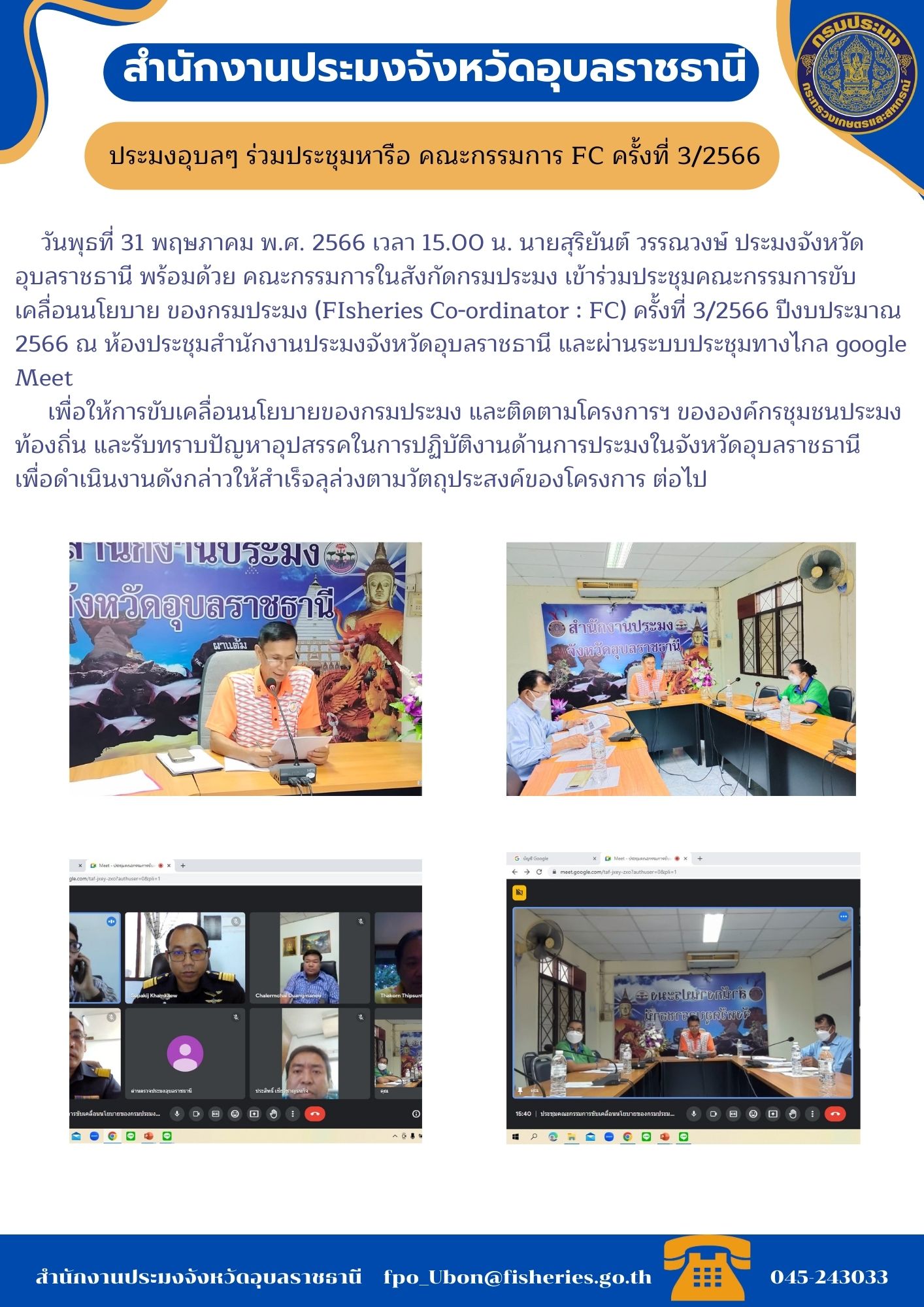 ประมงอุบลๆ ร่วมประชุมหารือ คณะกรรมการ FC ครั้งที่ 3/2566..คลิก