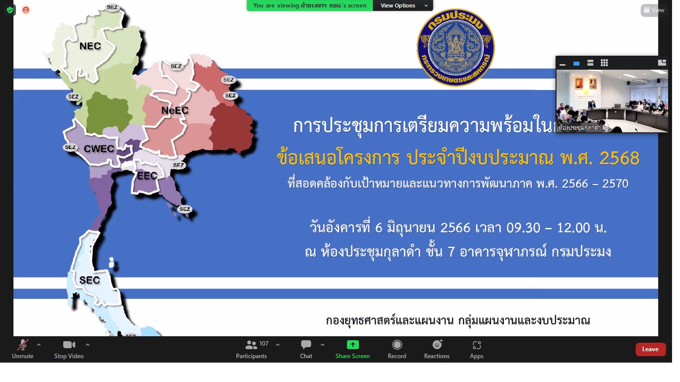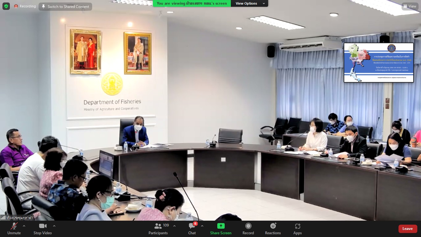 วันนี้ 6 มิถุนายน 2566 ณ ห้องประชุมสำนักงานประมงจังหวัดอุบลราชธานี นายประชุม ดวนใหญ่ นักวิชาการประมงชำนาญการพิเศษ รักษาราชการแทน ประมงจังหวัดอุบลราชานี พร้อมด้วยนายสุนทร รุ่งเรือง หัวหน้ากลุ่มบริหารจัดการด้านการประมง และนางเพชรรัตน์ สมเสนาะ หัวหน้ากลุ่มบริหารและยุทธศาสตร์ เข้าร่วมประชุมเตรียมความพร้อมในการจัดทำข้อเสนอโครงการ ประจำปีงบประมาณ พ.ศ. 2568 ผ่านระบบ Zoom Meeting โดยมีนายมานพ หนูสอน รองอธิบดีกรมประมง เป็นประธาน
