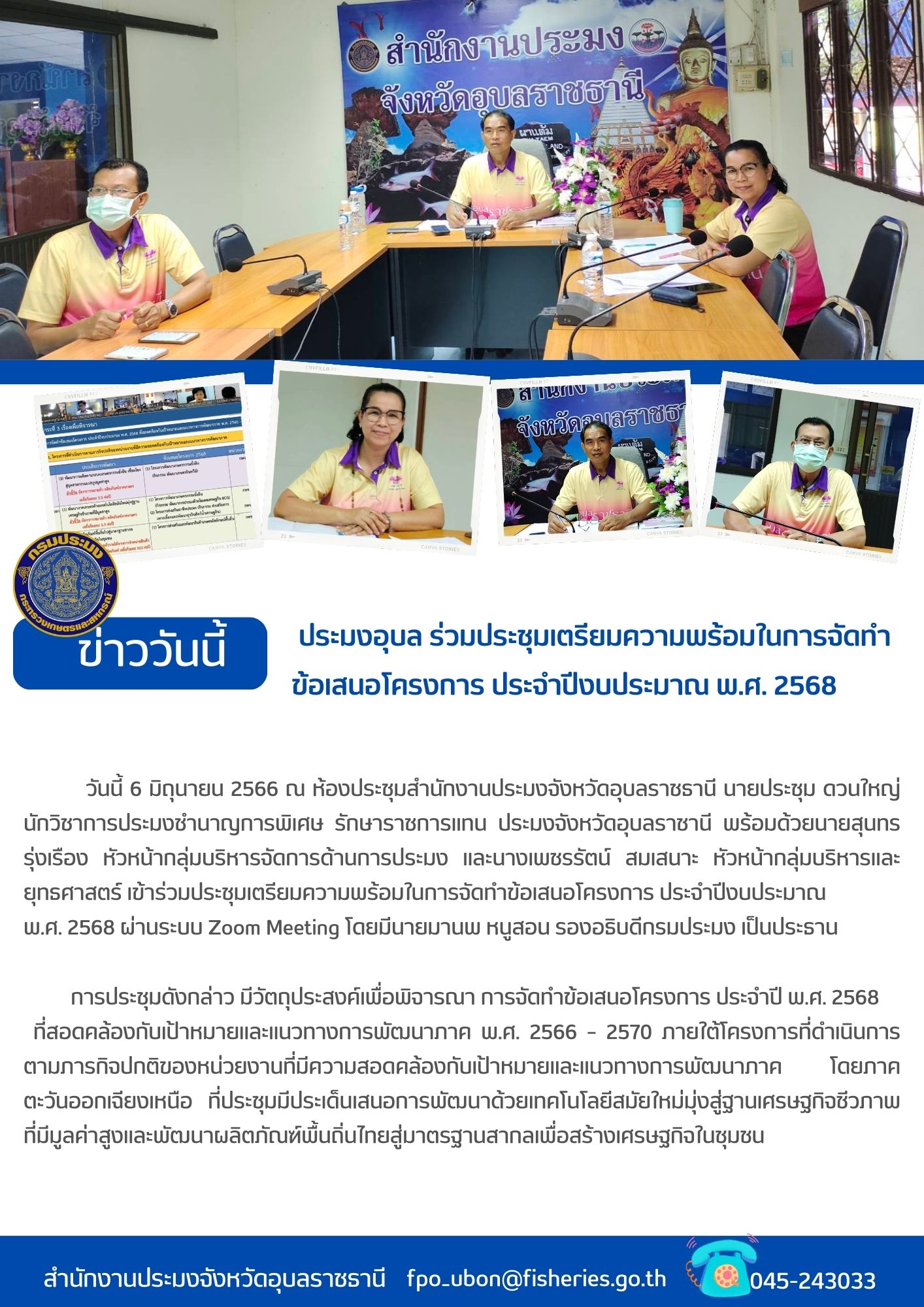 ประมงอุบล ร่วมประชุมเตรียมความพร้อมในการจัดทำข้อเสนอโครงการ ประจำปีงบประมาณ พ.ศ. 2568..คลิก