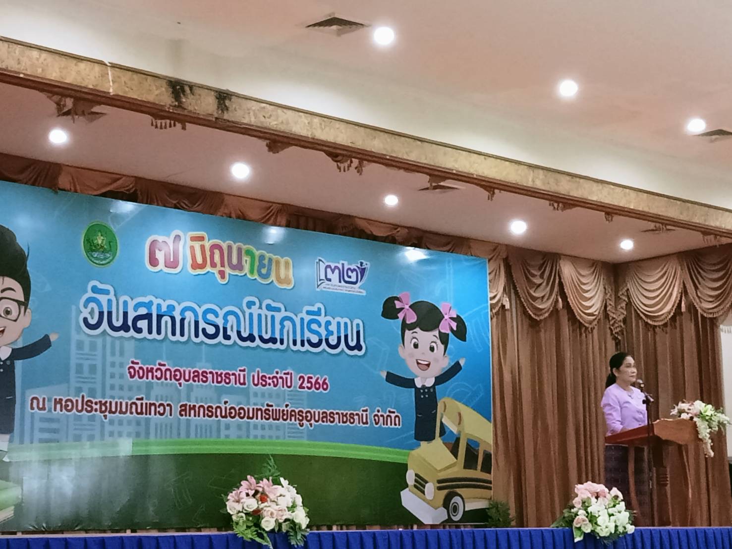 วันที่ 7 มิถุนายน 2566 เวลา 10.30 น. นางเพชรรัตน์ สมเสนาะ หัวหน้ากลุ่มบริหารและยุทธศาสตร์ ได้รับมอบหมายให้ร่วมพิธีเปิดงาน "7 มิถุนายน วันสหกรณ์นักเรียน ประจำปี 2566" พร้อมกันทั่วประเทศ ธีมงาน "32  ปี สืบสานพระราชปณิธาน เสริมสร้างประสบการณ์ผ่านสหกรณ์นักเรียน" เพื่อเฉลิมพระเกียรติสมเด็จพระกนิษฐาเธอราชเจ้า กรมสมเด็จพระเทพรัตนราชสุดาฯ สยามบรมราชกุมารี ณ หอประชุมปทุมมณีเทวา สหกรณ์ออมทรัพย์ครูอุบลราชธานี จำกัด โดยมี นางทรงลักษณ์ วรภัย รองผู้ว่าราชการจังหวัดอุบลราชธานี เป็นประธานพิธีเปิด
