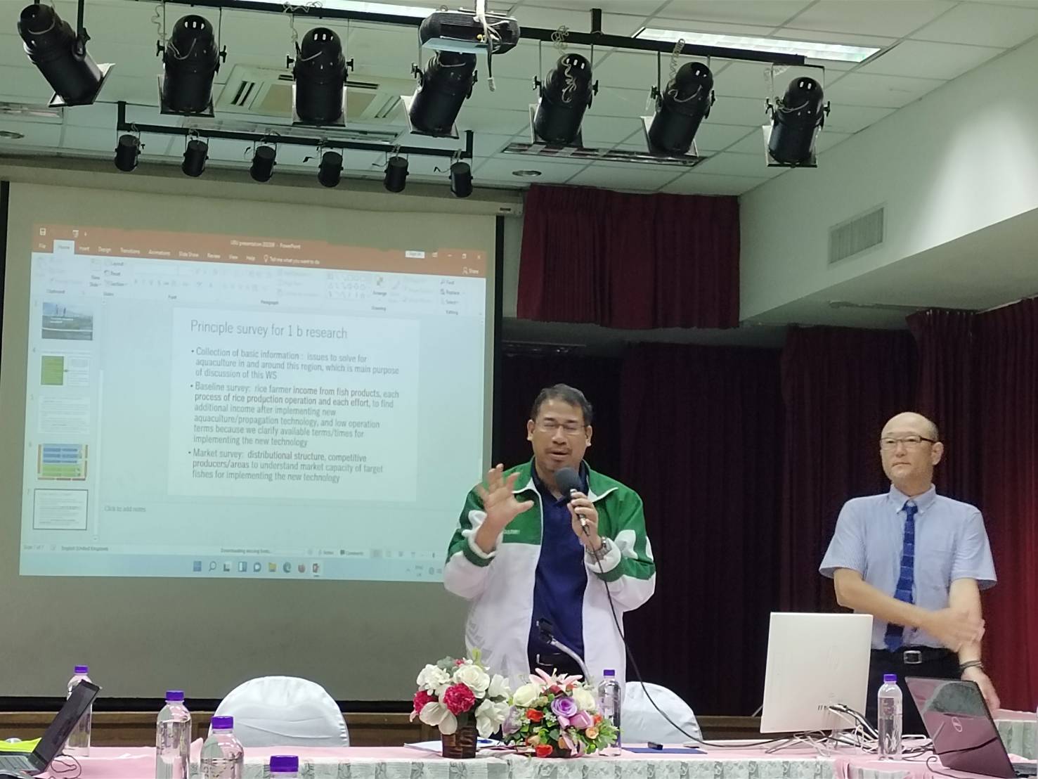 โดยมี Dr. Tsutom MIYATA (JIRCAS) ศ.ดร. ทวนทอง จุทาเกตุ (UBU) ได้นำเสนอข้อมูลสัตว์น้ำขนาดเล็กศักยภาพทรัพยากรฐานชีวภาพ ดร. ชัยวุฒิ กรุดพันธ์ (UBU) Dr. Minoru SAITO (JIRCAS) คุณ สมพัน พิลาวง (LARReC) สปป. ลาว ร่วมแลกเปลี่ยนเรียนรู้ระหว่างผู้ร่วมเสวนา พร้อมทั้งนำเยี่ยมชมฟาร์มประมง หน่วยทดลอง (UBU fishfarm) และเยี่ยมชมกิจกรรมศูนย์การเรียนรู้ฯ หน่วยการเรียนรู้การเลี้ยงสัตว์น้ำขนาดเล็กโดยอาศัยปัจจัยธรรมชาติ (JIRCAS-UBU) ศูนย์การเรียนรู้ แหล่งท่องเที่ยวเชิงเกษตร เฮือนฮ่วมแฮง อำเภอพิบูลมังสาหาร พร้อมแลกเปลี่ยนเรียนรู้ระหว่างผู้ร่วมเสวนา