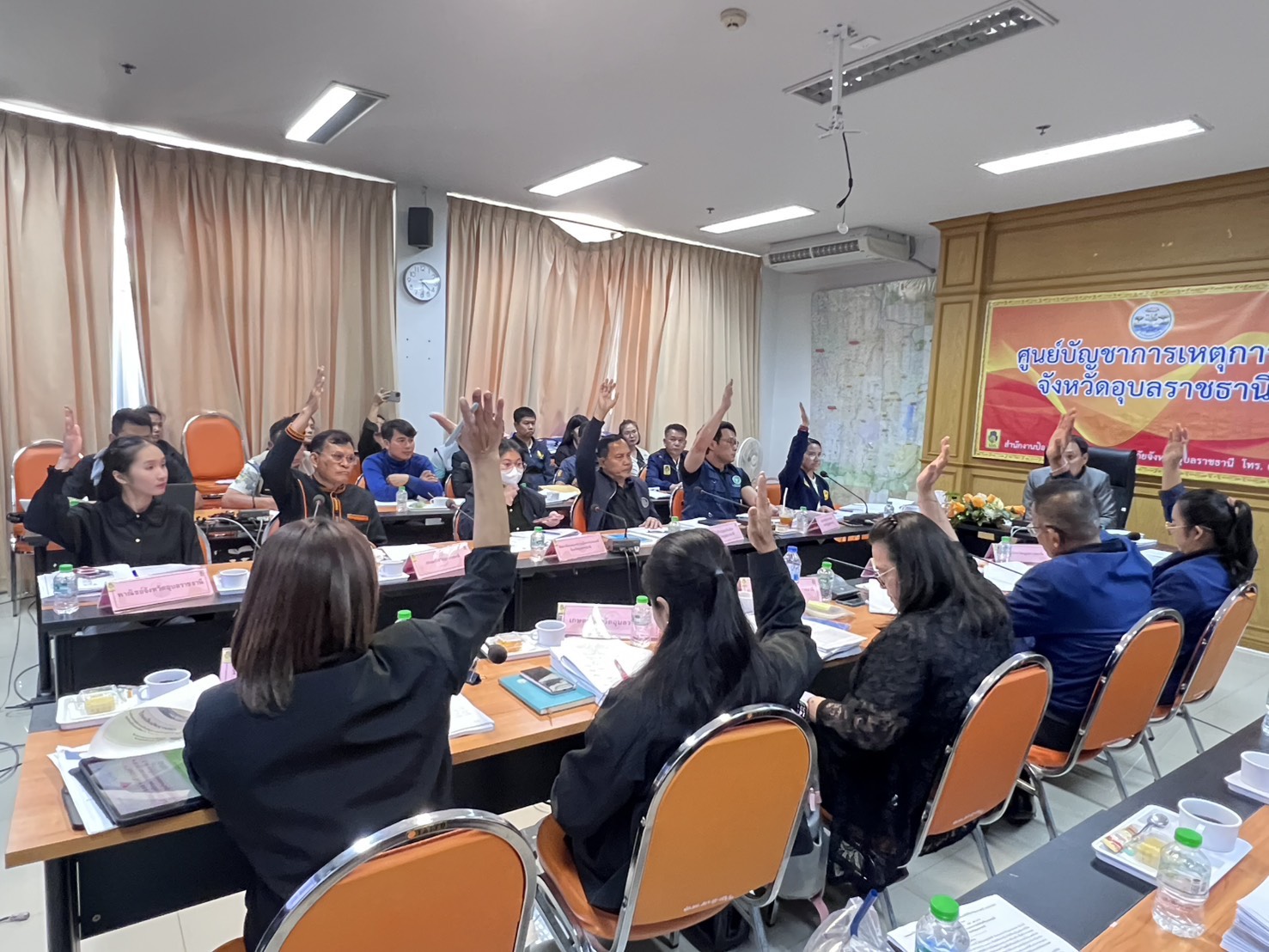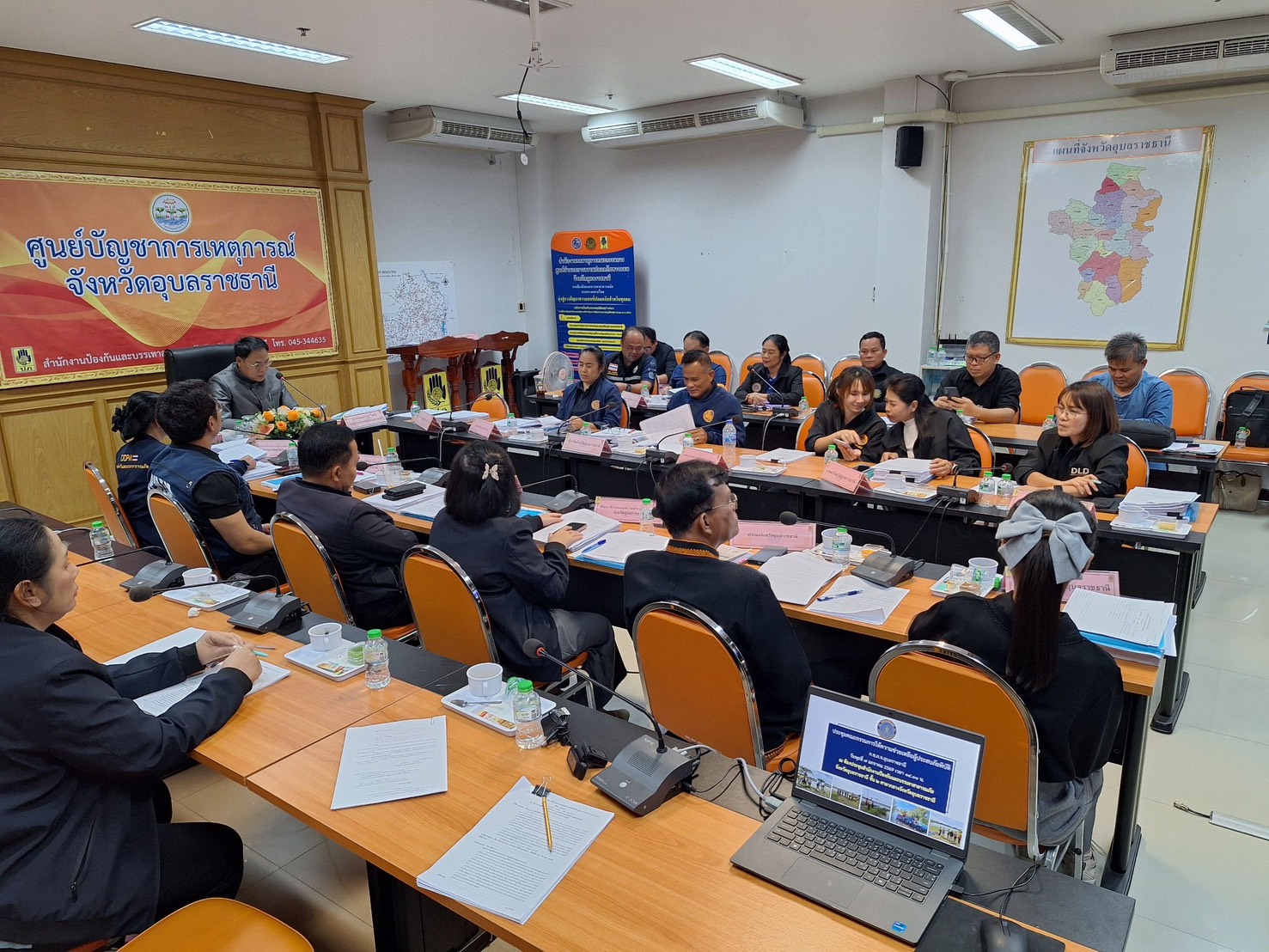 ณ ห้องประชุมสำนักงานป้องกันและบรรเทาสาธารณภัยจังหวัดอุบลราชธานี ชั้น 2 ศาลากลางจังหวัดอุบลราชธานี