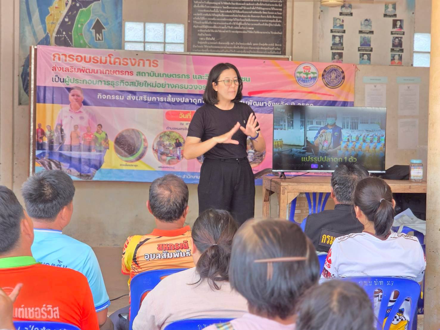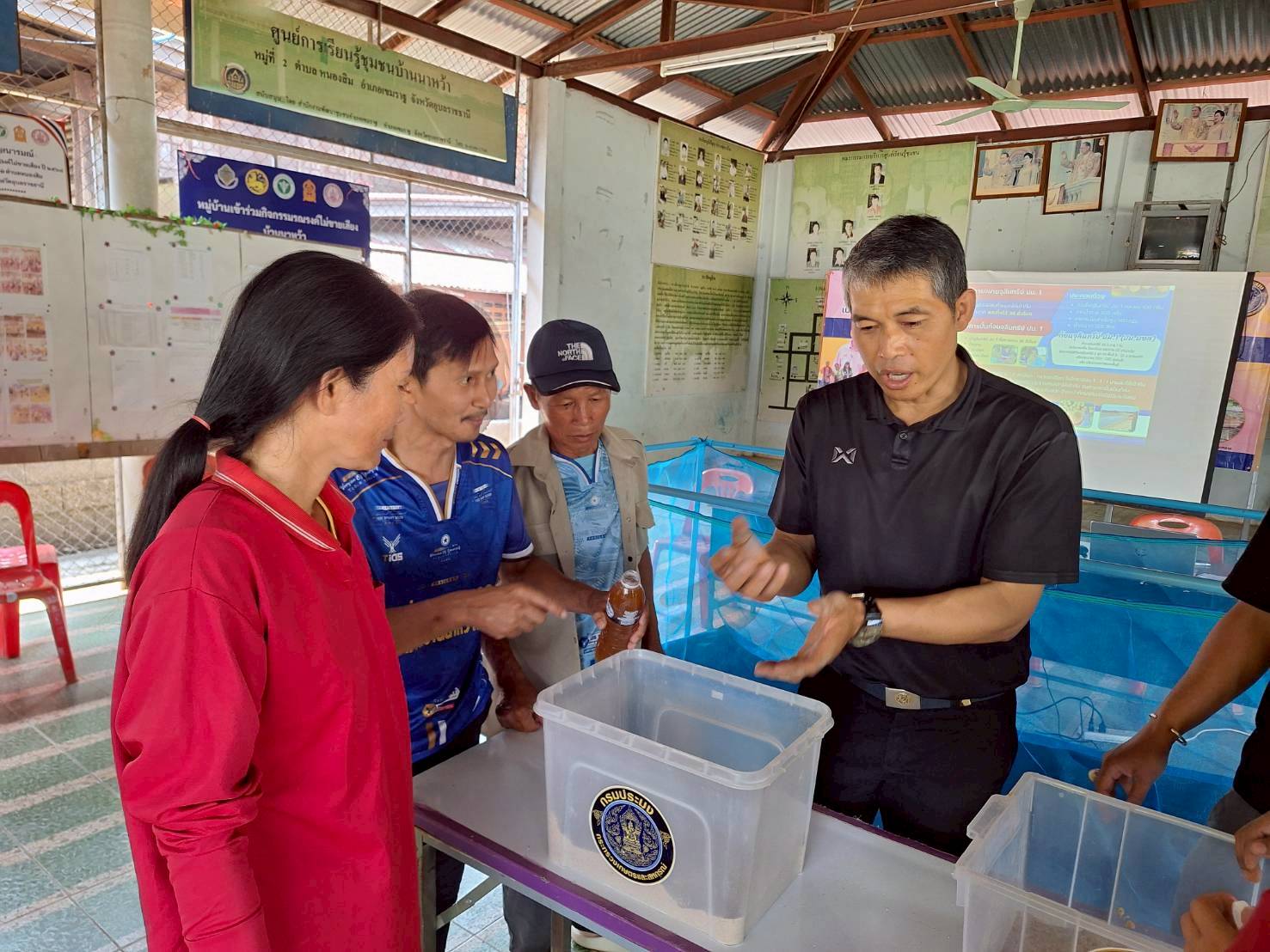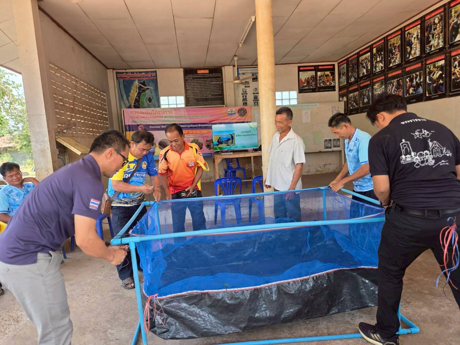ในครั้งนี้ มีการให้คาวมรู้เบื้องต้นการเลี้ยงปลาดุกในกระชังบก  การเตรียมพื้นที่เลี้ยง การทำอาหารลดต้นทุนจากวัตถุดิบทางการเกษตร (รำ หยวกกล้วย) เพื่อให้เกษตรกรมีแหล่งอาหารโปรตีนไว้บริโภคในครัวเรือนและนำความรู้ไปต่อยอดในการประกอบอาชีพและเพิ่มรายได้ที่ยั่งยืน