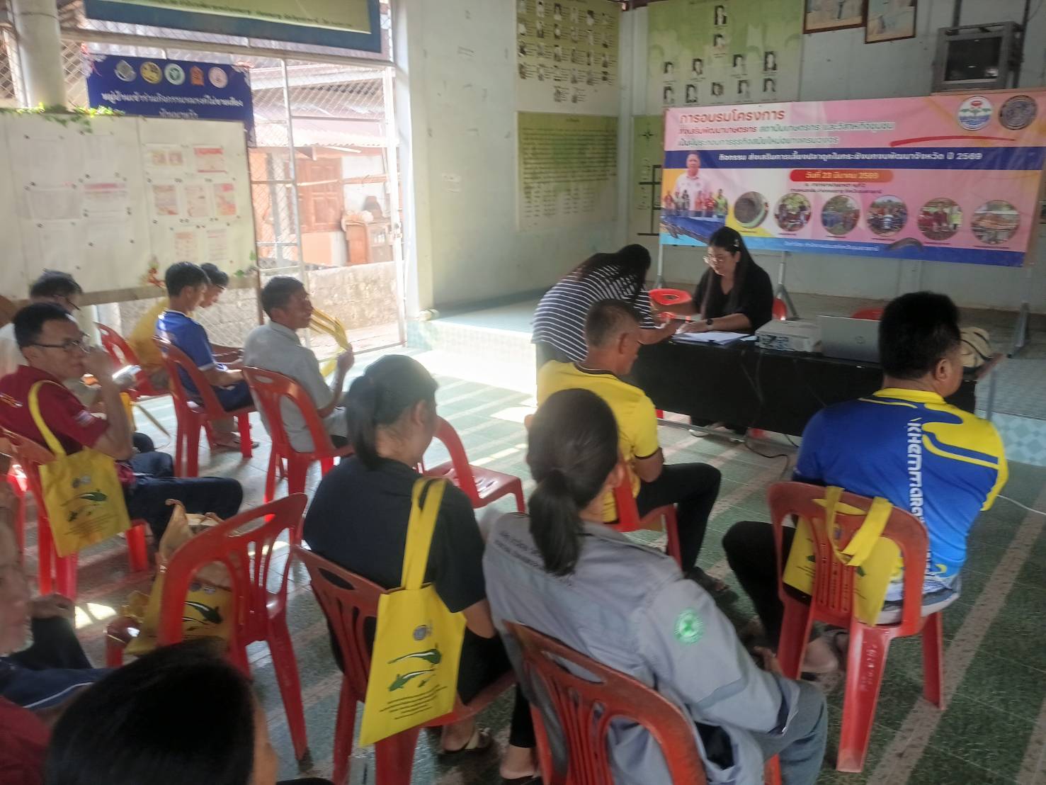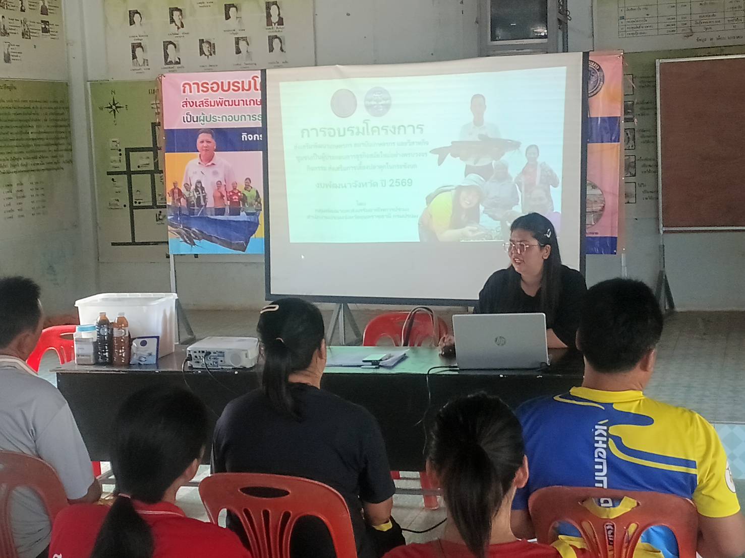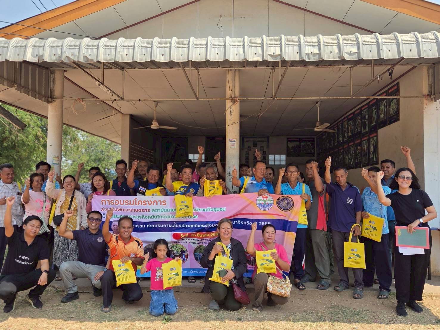วันที่ 23 มีนาคม 2569 ณ ตำบลหนองสิม อำเภอเขมราฐ จังหวัดอุบลราชธานี  นางสาวศิริรัตน์ อุทัยวัฒน์  รักษาการในตำแหน่งหัวหน้ากลุ่มพัฒนาและส่งเสริมอาชีพการประมง นายภารดร เอียดแก้ว ประมงอำเภอเขมราฐ พร้อมเจ้าหน้าที่กลุ่มพัฒนาและส่งเสริมอาชีพการประมง สำนักงานประมงจังหวัดอุบลราชธานี  จัดอบรมเกษตรกรที่เข้าร่วมโครงการส่งเสริมพัฒนาเกษตรกร สถาบันเกษตรกร และวิสาหกิจชุมชนเป็นผู้ประกอบการธุรกิจสมัยใหม่อย่างครบวงจร กิจกรรมหลัก ส่งเสริมการเลี้ยงปลาดุกในกระชังบก จำนวนทั้งสิ้น 50 ราย