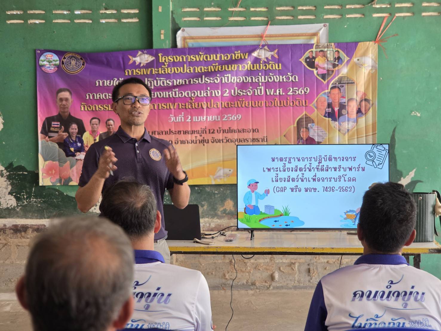 วันที่ 2 เมษายน  2569 เจ้าหน้าที่กลุ่มพัฒนาและส่งเสริมอาชีพการประมง ลงพื้นที่จัดอบรมเกษตรกรในเขตอำเภอน้ำขุ่น จังหวัดอุบลราชธานี โดยมีรายละเอียด ดังนี้